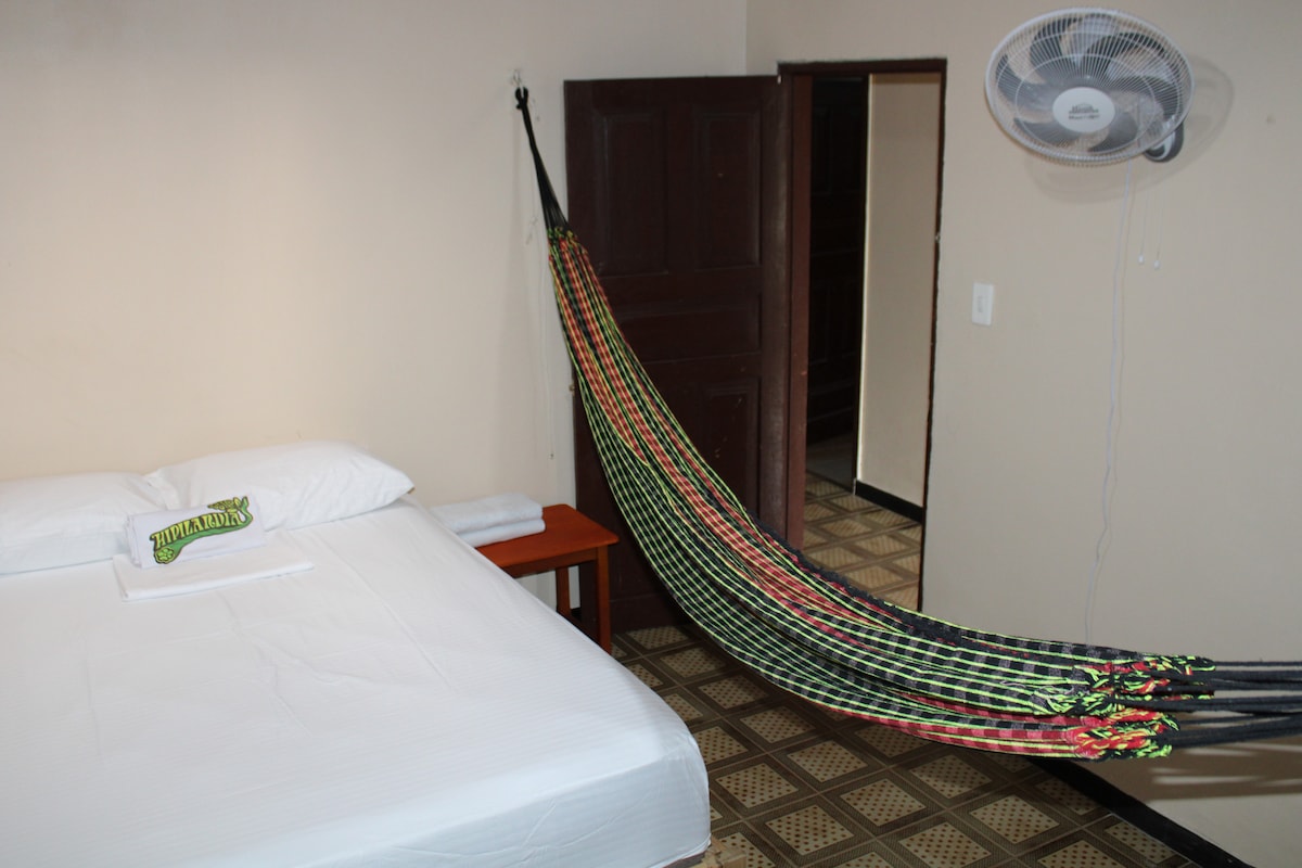 Disfruta de la sencillez de este alojamiento tranquilo y céntrico en Leticia. Descubre el espacio de coworking con internet satelital, ideal para nomadas digitales. Cocina compartida, patio, bebidas y comidas y asesoría en viajes sostenibles. Nuestras camas cuentan con certificado de calidad hotelera, por lo cual se garantiza el descanso cómodo en nuestras instalaciones.