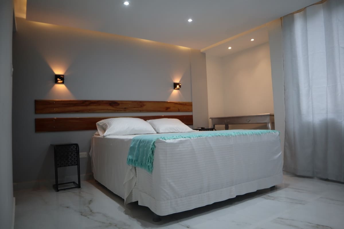 Amplia y cómoda habitación doble en uno de los principales hoteles de Leticia: Hotel Anaconda. Cuenta con una cama doble, baño privado con ducha con agua caliente, aire acondicionado, vistas al exterior, armario y TV por cable. Puedes disfrutar de todas las comodidades que te ofrece el hotel y recuerda que el desayuno está incluido en la tarifa, así como la limpieza diaria de la habitación. ¡Te esperamos!