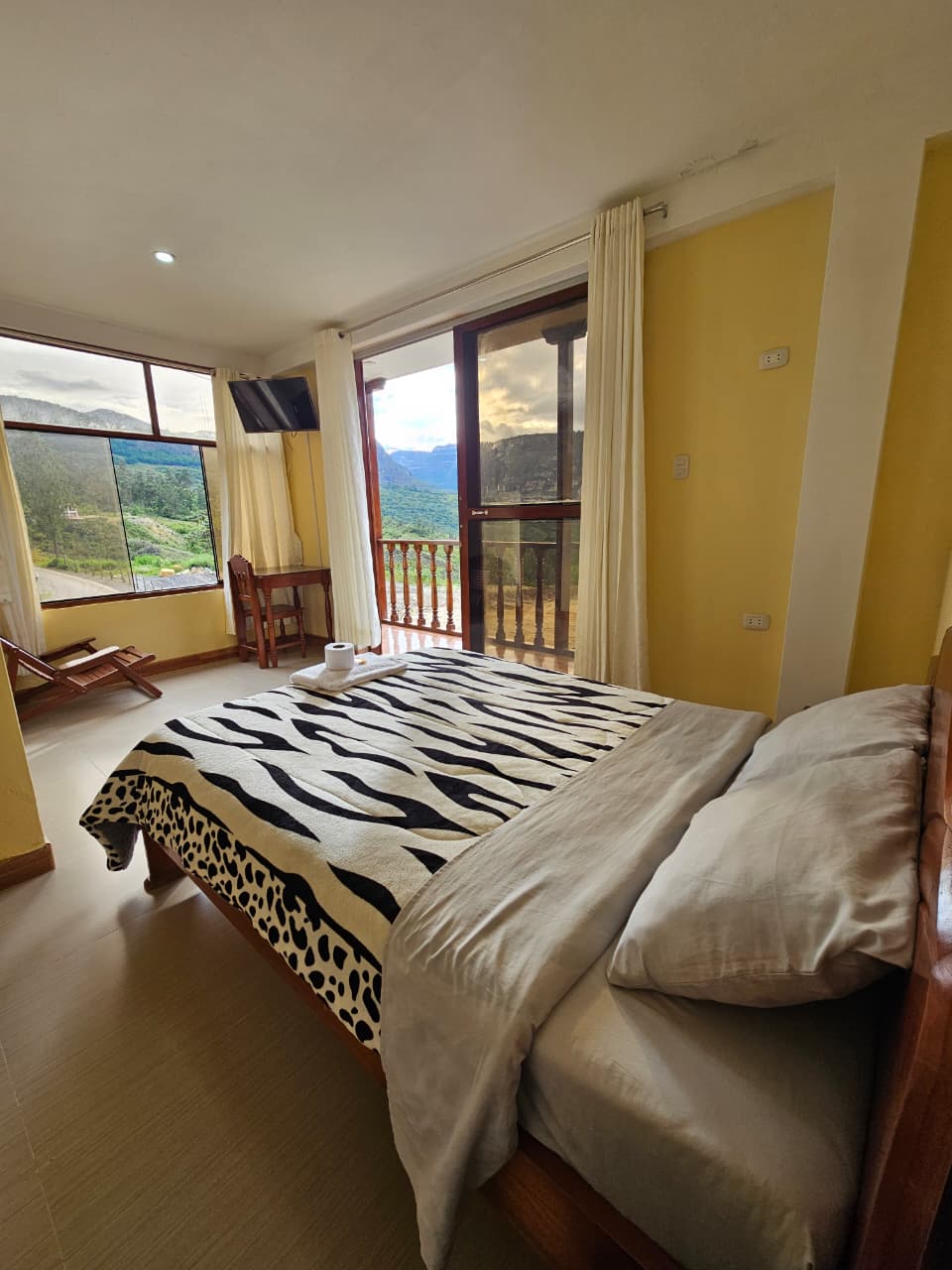 Disfruta de una estadía única, en el corazón de Chachapoyas. Nuestra habitación combina comodidad y estilo, con camas confortables, baño privado con agua caliente, WiFi de alta velocidad y TV por cable. Su decoración cálida crea un ambiente acogedor, mientras que las amplias ventanas ofrecen vistas encantadoras a la ciudad y al paisaje andino. Ideal para viajeros que buscan descanso, elegancia y una experiencia auténtica en los Andes