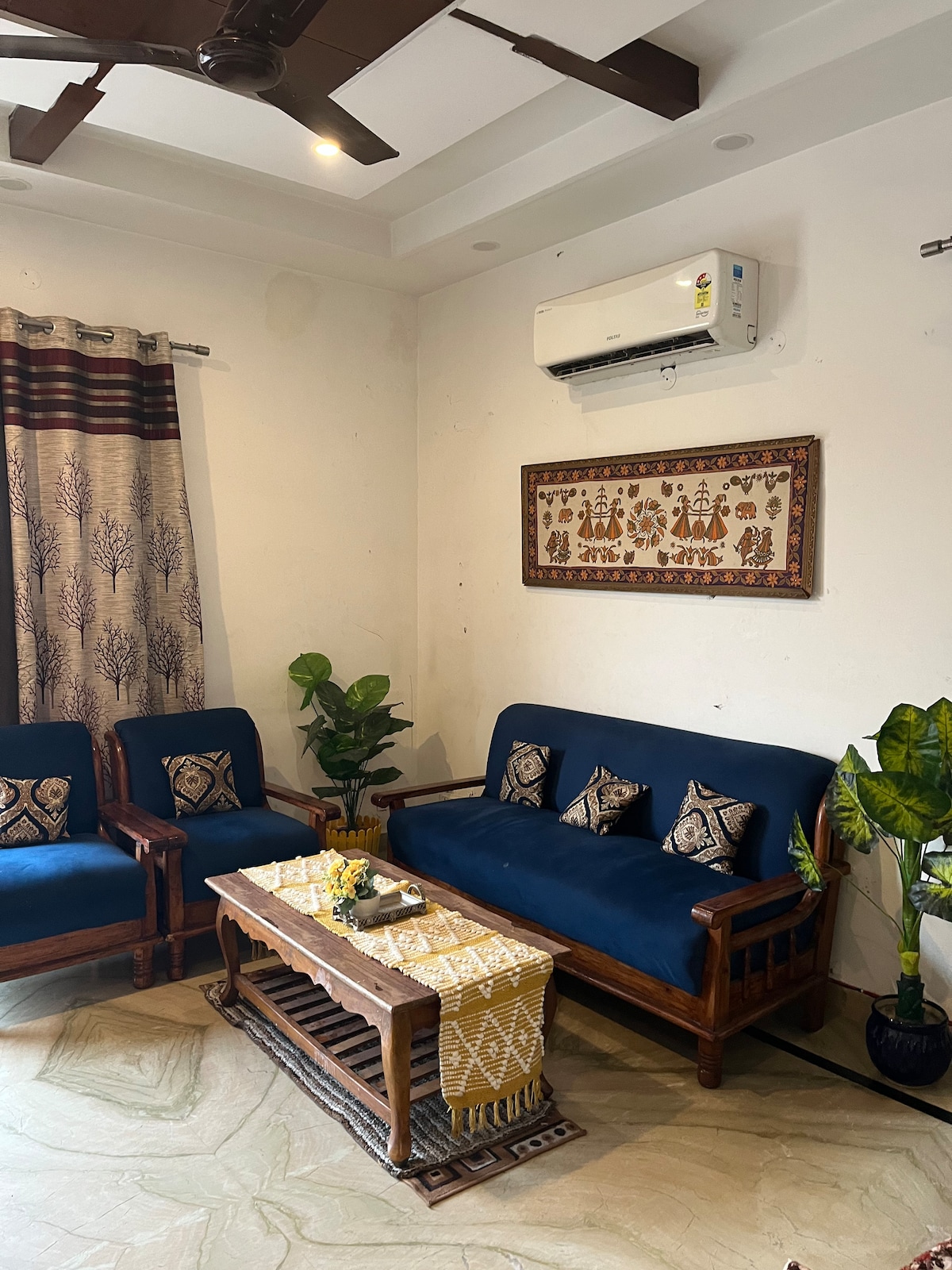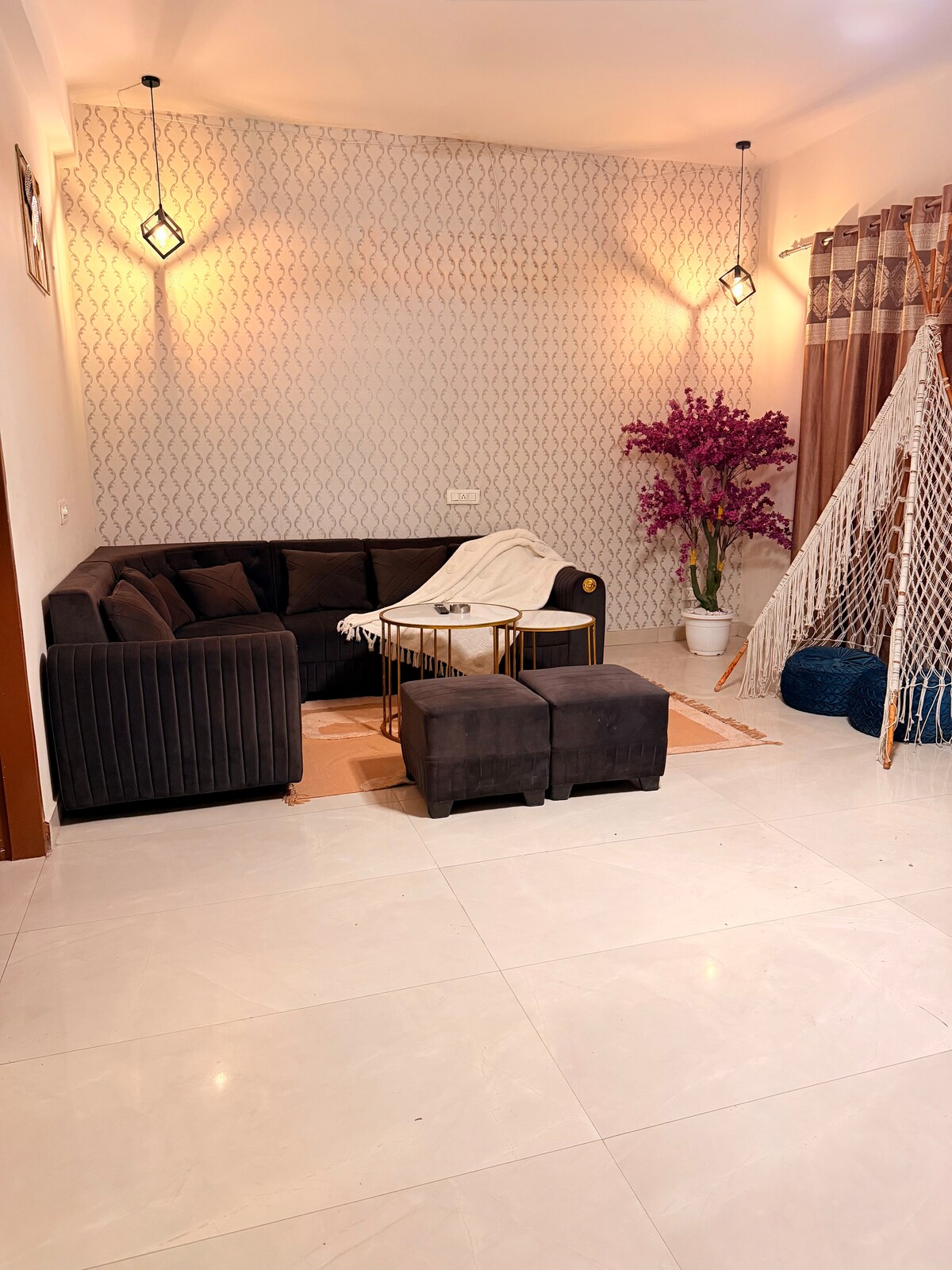 Step into a space where earthy charm meets modern comfort. Nestled in a peaceful, family-friendly gated neighborhood, Studio Sienna is a cozy 2BHK apartment designed for slow living, creative vibes, and warm hospitality. Located on the 2nd floor, the apartment is drenched in natural light and styled with a warm terracotta palette, the interiors are filled with handcrafted decor, rustic wooden textures, vintage finds, and original artworks thoughtfully chosen to make you feel instantly at home.