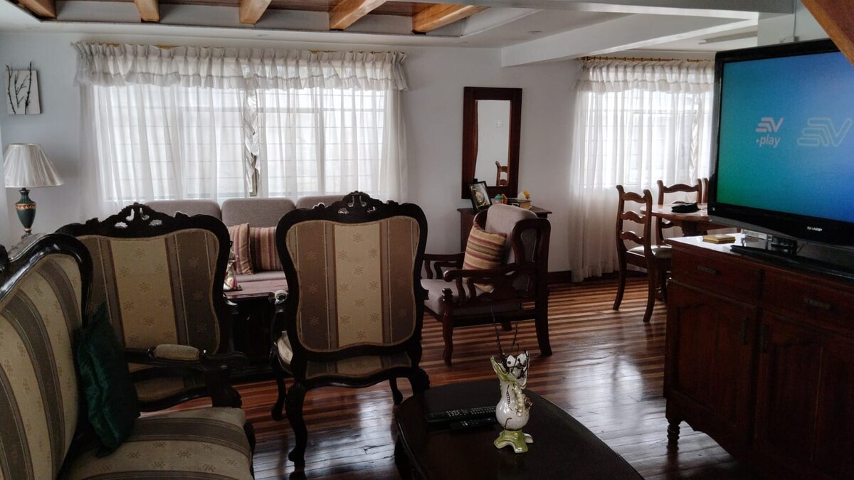 ¡Bienvenidos! Ya sea que vengas por turismo, trabajo o eventos familiares, nuestra casa está diseñada para ofrecerte una experiencia sin complicaciones. Ideal para parejas o grupos grandes de hasta 7 personas (acomodación doble), perfecta para estancias cortas o largas. Situada en la emblemática "Y" hacia Baños, Cevallos y Riobamba. ¡Estarás en el punto de partida ideal para explorar la provincia! A pocos pasos del Terminal Terrestre Sur, facilitando tus llegadas y salidas sin estrés de tráfico