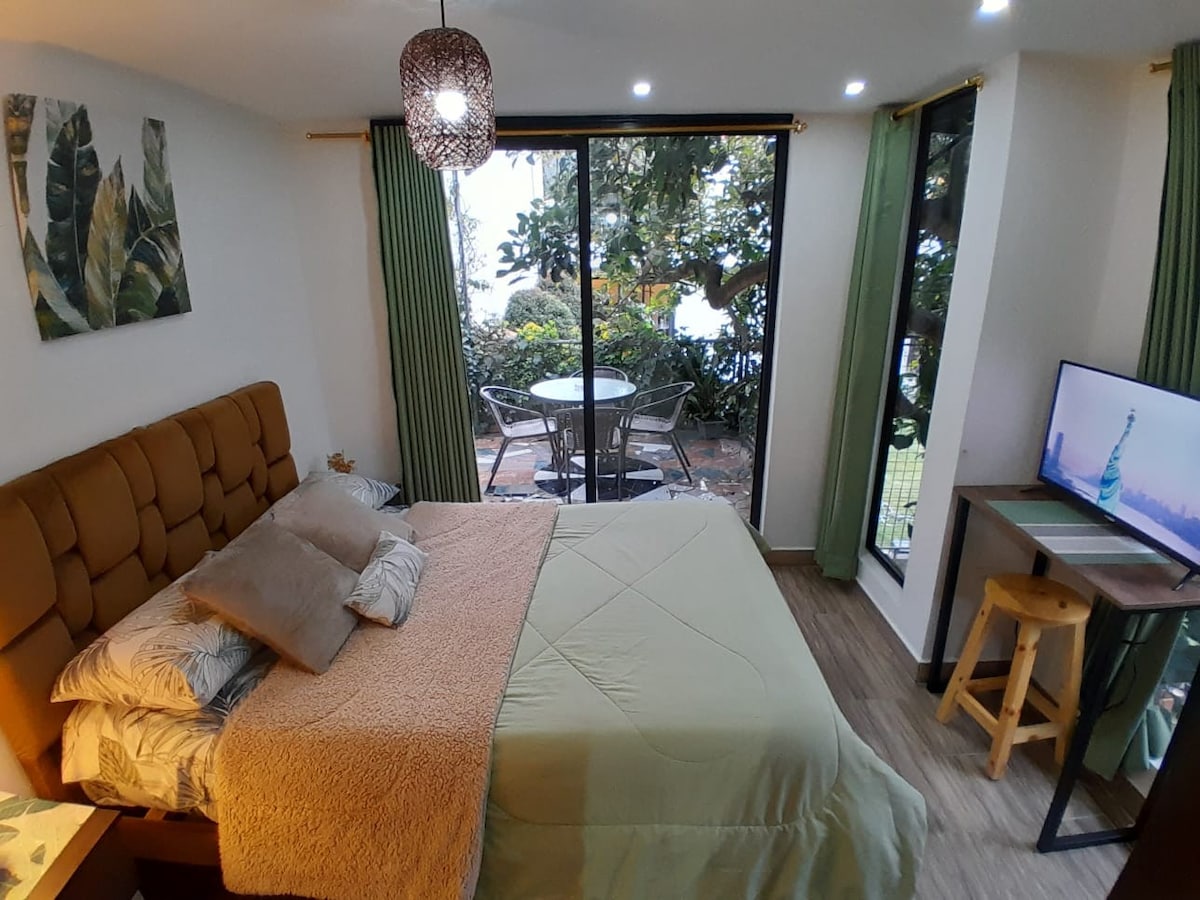 Suite privada e independiente, ideal para dos huéspedes, ubicada a solo dos minutos del Mall de Los Andes. Cuenta con una cama de dos plazas, escritorio, área de cafetería equipada, baño privado con productos de higiene y wifi gratuito. Además, incluye garaje para mayor comodidad. Está cerca de universidades y centros comerciales, ofreciendo una opción perfecta para una estancia cómoda y bien conectada en la ciudad.