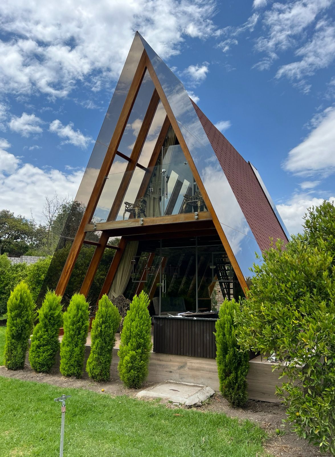 Escape to relaxation in this cozy chalet, located in an exclusive neighborhood of the city. With unique details in every corner, the house combines elegance and warmth. Relax in its spacious 1000 m² patio, surrounded by trees and plants. Enjoy spectacular views from the loft on our terrace, perfect for a glass of wine. Just 12 minutes from downtown Ambato. ✨ Your retreat awaits.