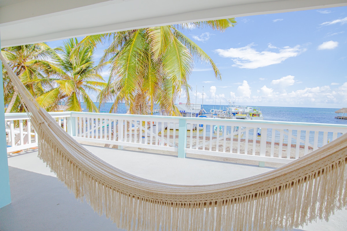 Beachfront property is perfectly situated in the heart of San Pedro Town, offering the ultimate combination of convenience and tropical charm. Steps from the Water Taxi & an easy 10 min walk from the airstrip! When you step outside, you’ll feel the sand beneath your feet – no shoes required! We are Surrounded by popular attractions, lively restaurants, and local shops, this is the perfect spot to immerse yourself in the rich culture and vibrant energy that San Pedro is known for.