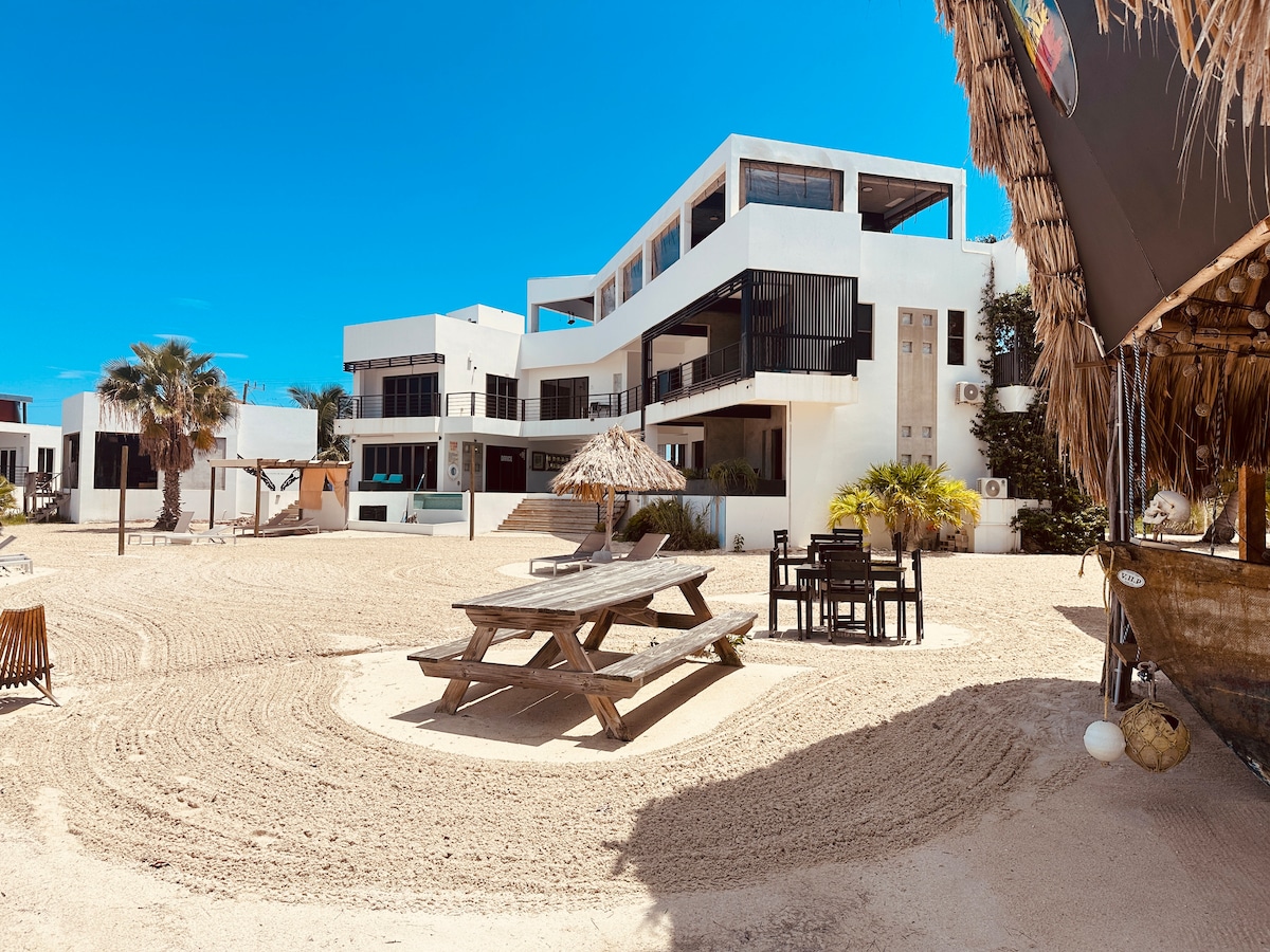 Stay at Playa De Sala Boutique Hotel (13+) oasis in Tarpon Bay, 4.5 miles south of San Pedro. Our suites feature king/queen beds, with a rooftop bar, pool, and restaurant on-site. Enjoy complimentary breakfast, coffee, bikes, kayaks, beach towels, and concierge services. Sip signature cocktails and mocktails at the historic boat bar. Airport or water taxi pick-up available (extra cost). Your perfect island escape awaits!