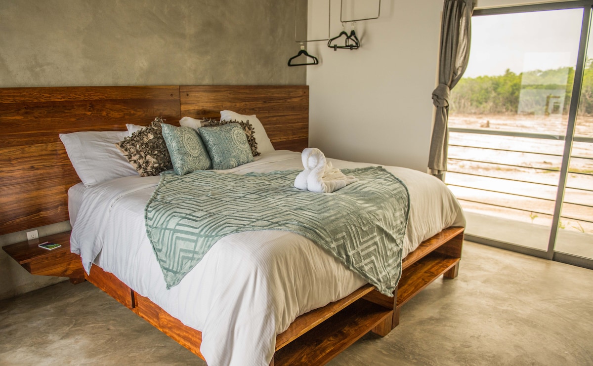 The original eco friendly, off the grid Bed and Breakfast in Secret Beach. The cabana is a private room with queen bed and private bathroom. Enjoy sea, sunset, and stargazing views from your balcony. Quiet mornings and calm sea waters with no sargassum! Purchase drinks and snacks, play games, gather at our social club. Steps from the sea!! Our cabanas do not have air conditioning, instead fall asleep to the Caribbean breezes, with ceiling fans above and windows that invite in fresh sea air.