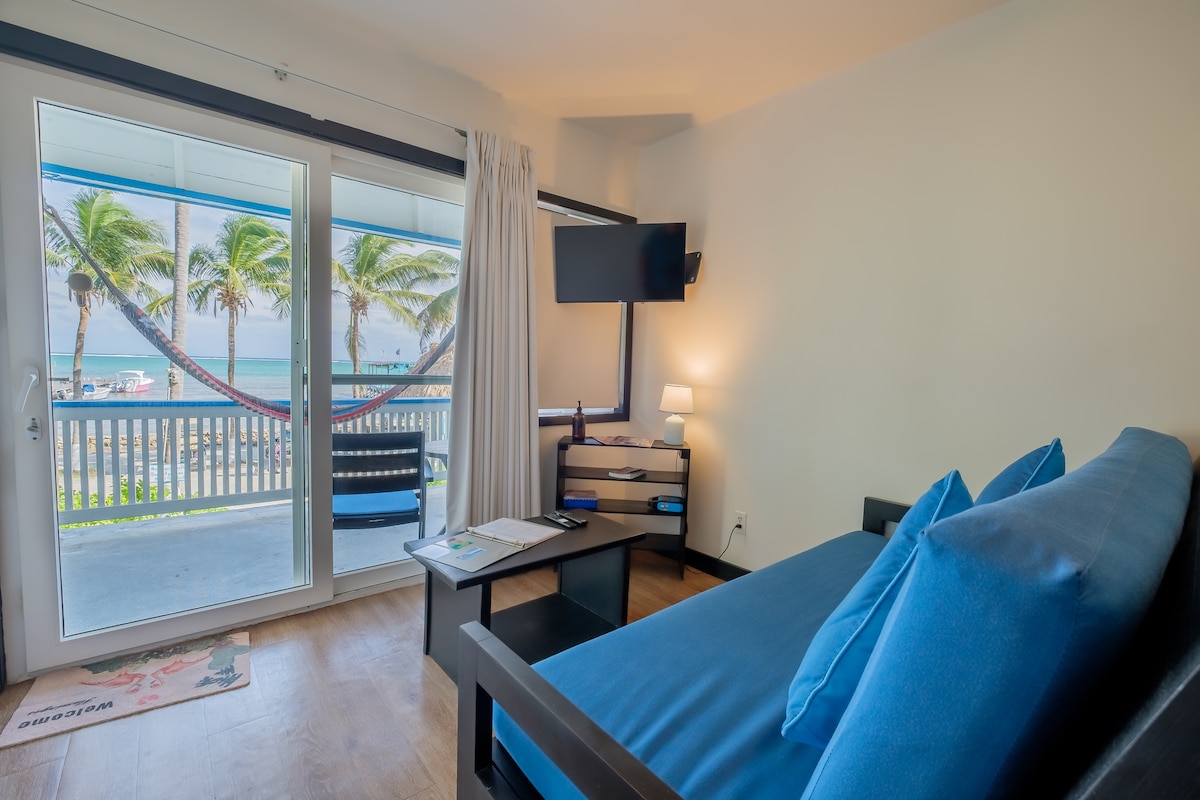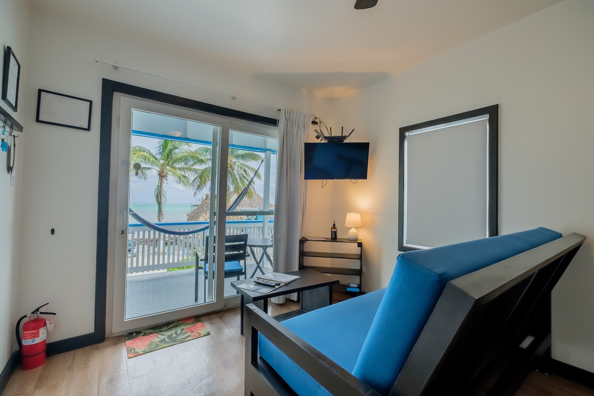 Our 1 bedroom suite is located on the second floor of the amazing overwater hotel located in Lina Point. Enjoy sunsets from your private lanai overwater Every room has wifi, cable, AC, king beds resting upon Belizean hardwood furnishings, and pull out mattresses available upon request. Room service available and free continental breakfast is included. 5 minutes away from downtown San Pedro