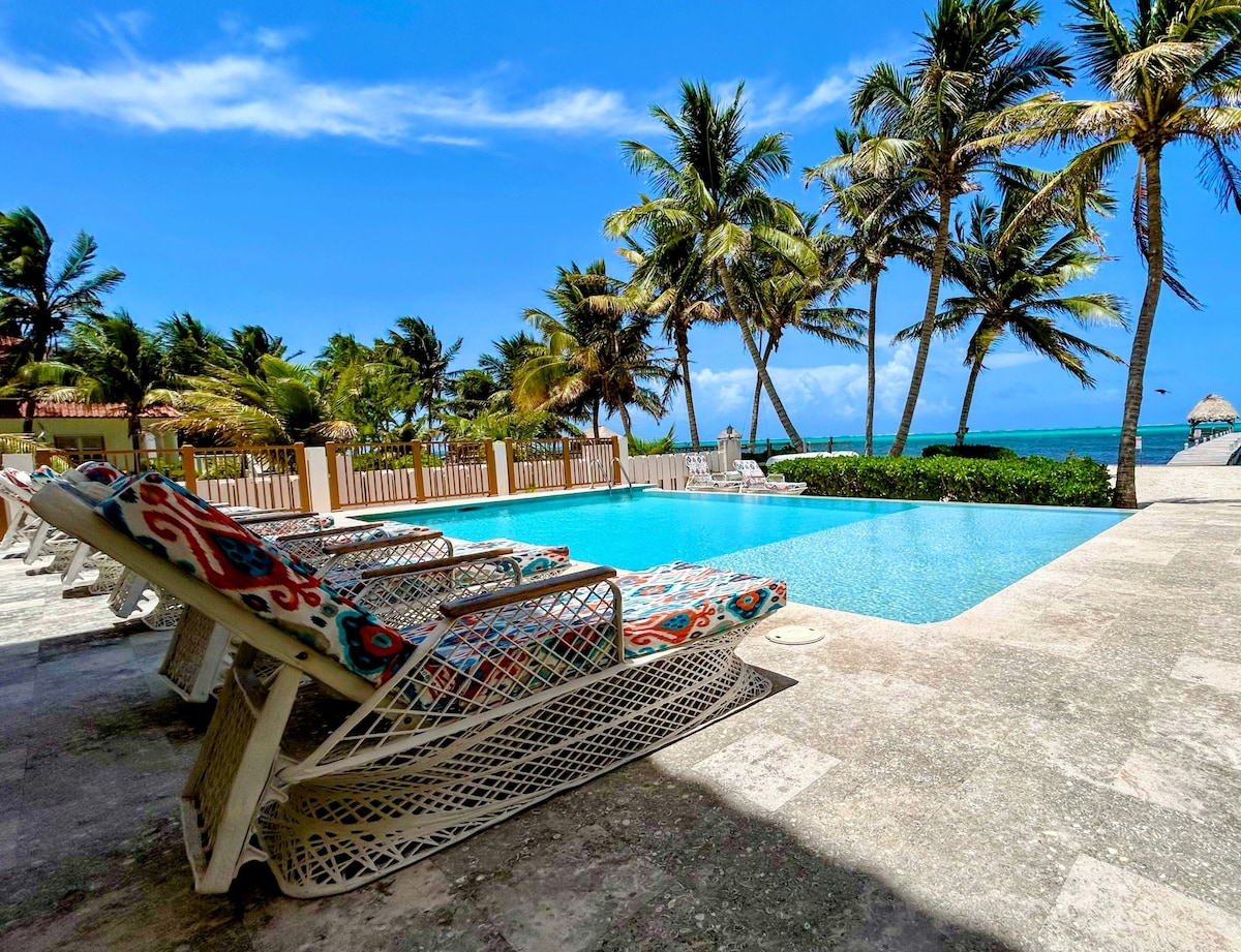GOLD STANDARD APPROVED! This means we have met the rigorous and comprehensive requirements established in 2020 by the Belize Tourism Board to ensure safety, cleanliness and the highest level of experience for travelers. This 3 bedroom/2.5 bath 2880 square foot condo is in a beautiful, small beachfront complex just south of San Pedro on Ambergris Caye. You'll have a fabulous view of the sea from the large veranda — enjoy coffee, drinks, meals while gazing at the Caribbean!