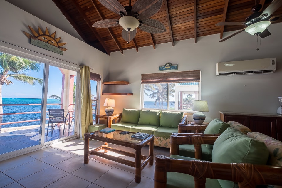 Enjoy Belize while staying in this beautiful second floor 2 bed/ 2 bath oceanfront condo. Relax on the patio and watch the water or gaze upon the great Barrier Reef. With a fully equipped kitchen you have everything you need to cook on your vacation. Relax with a TV in the living room as well as TVs in the bedrooms. With two bedrooms and two bathrooms this is perfect for two couples or a family vacation.