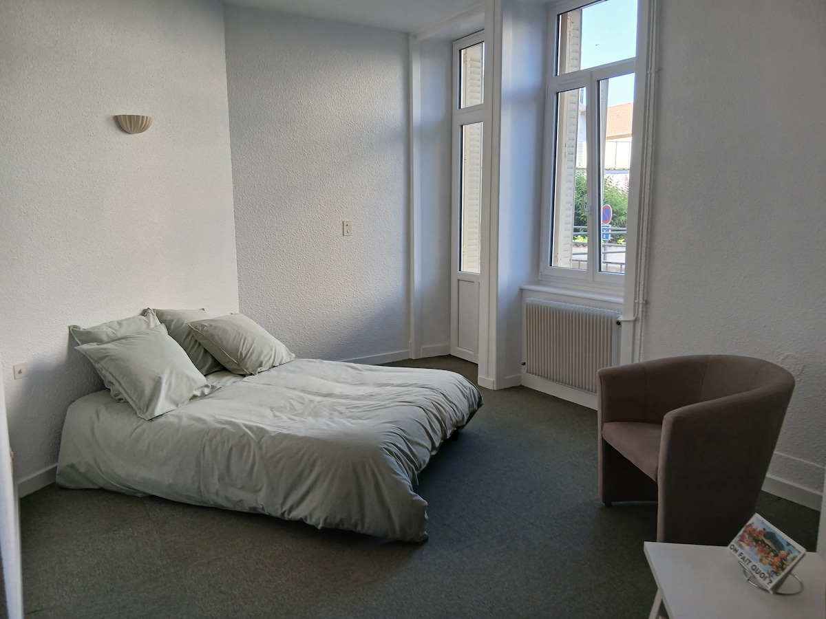 Profitez d'un logement élégant entièrement refait à neuf. Il se situe à proximité immédiate de tous les commerces du centre ville. Chaque année de nombreuses animations ont lieu ( World Festival, le Rallye de la fourme,la Rang d'Auvergne, les Fourmofolies...) Le logement est composé : - au rez-de-chaussée: une cuisine équipée -1er étage : un salon avec canapé convertible 2 places , la salle de bain - 2eme étage : une grande chambre. Les draps et serviettes sont fournis. Animaux non admis.