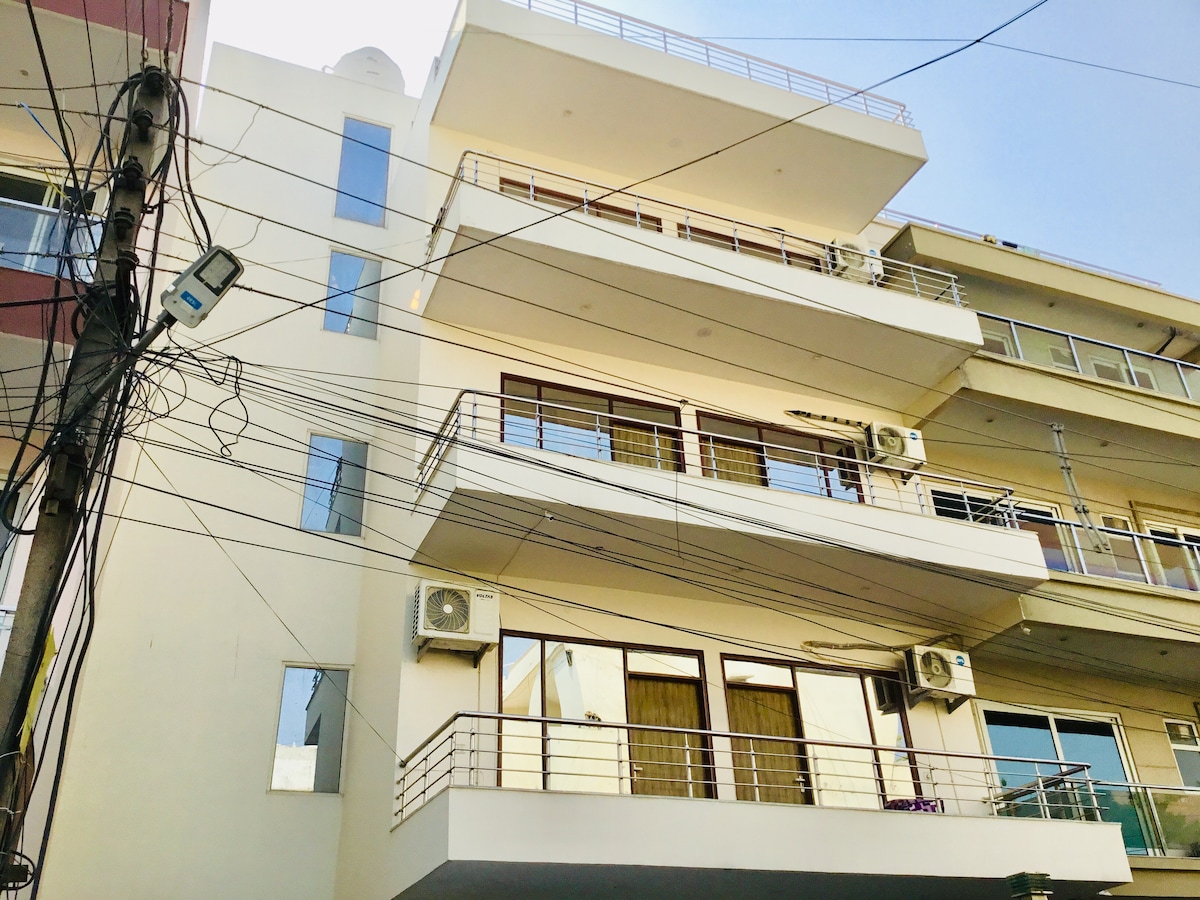 Bring your family or group of friends to this beautifully designed space that blends comfort, style, and a prime location in the heart of Gurgaon. Whether you're in town for work or a weekend getaway, this cozy home offers everything you need - spacious bedrooms with plush beds, built-in wardrobes, and clean, private bathrooms for a relaxing stay. The open-concept entryway creates the perfect setting to enjoy quality time, play games, share meals, or simply unwind together — just like home.