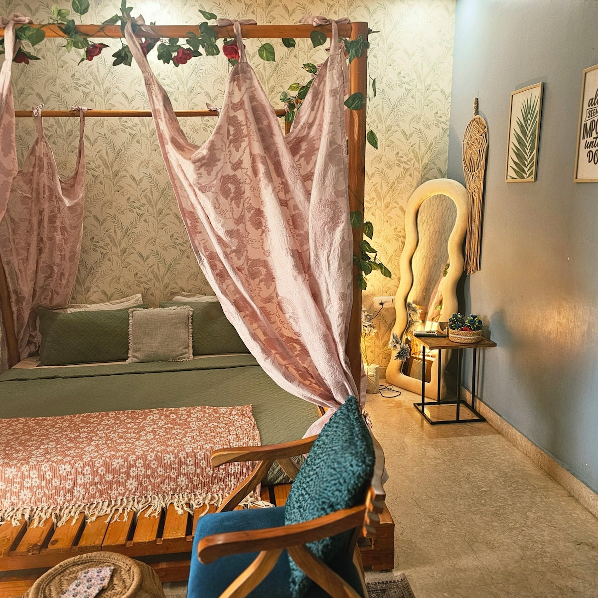 Wake up to breakfast & tea/coffee in this peaceful urban retreat, a space that feels like a warm hug, nestled ~3 mins from Golf Course Road, yet SO peaceful! Includes complementary essentials for your breakfast & tea/ coffee. Every small detail such as scented candles, air diffusers, sound system, mood lighting, personal care items, cooking essentials, board games & decor items are thoughtfully curated to make your stay cozy, comfortable, and unforgettable." 🏡💛