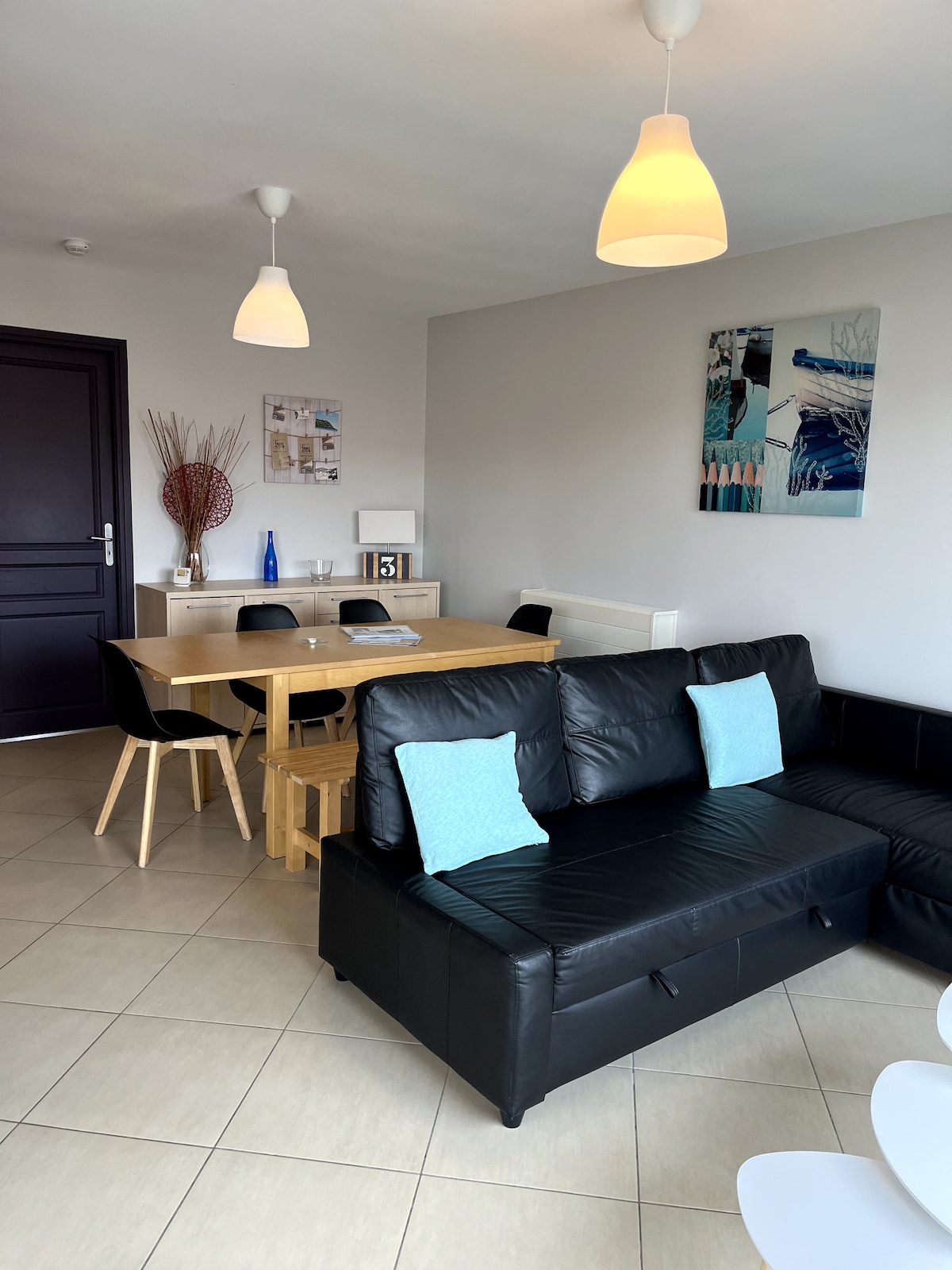 A 25 mètres de la digue, appartement avec véritable vue mer du salon (photo de couverture) Au 2ème étage d’une copropriété avec un jardin commun sans ascenseur. Idéal pour une famille avec 2/3 enfants. Ambleteuse est un joli village situé sur le site des deux Caps disposant de toutes les commodités sur place (boulangerie, supermarché). Idéalement situé entre Wimereux (5min) et Wissant (15min), également proche de Nausicaa (15 min). Endroit parfait pour les amoureux de la nature et de la mer.