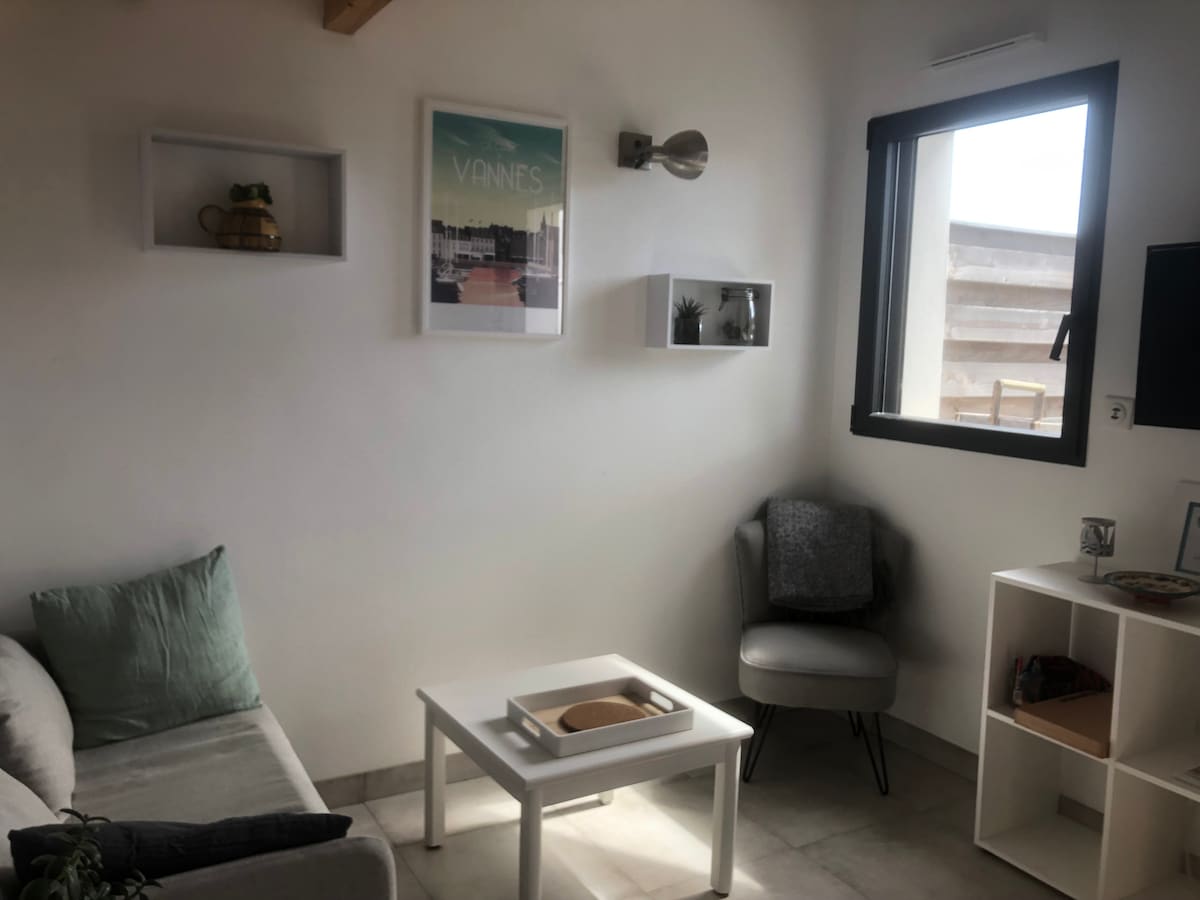 Venez tester un hébergement insolite dans des containers maritimes recyclés et aménagés en studio face à un bois. Idéal pour passer un week-end ou des vacances dans le magnifique Golfe du Morbihan. Proche du Port de Vannes (4km), des plages, de l'embarcadère vers les îles du Golfe (5km), et de la Gare (2km). Ce studio-contenair tout équipé est une partie indépendante de notre logement (situé au dessus). Vous pourrez profiter d'un grand jardin partagé et d'une petite terrasse indépendante.