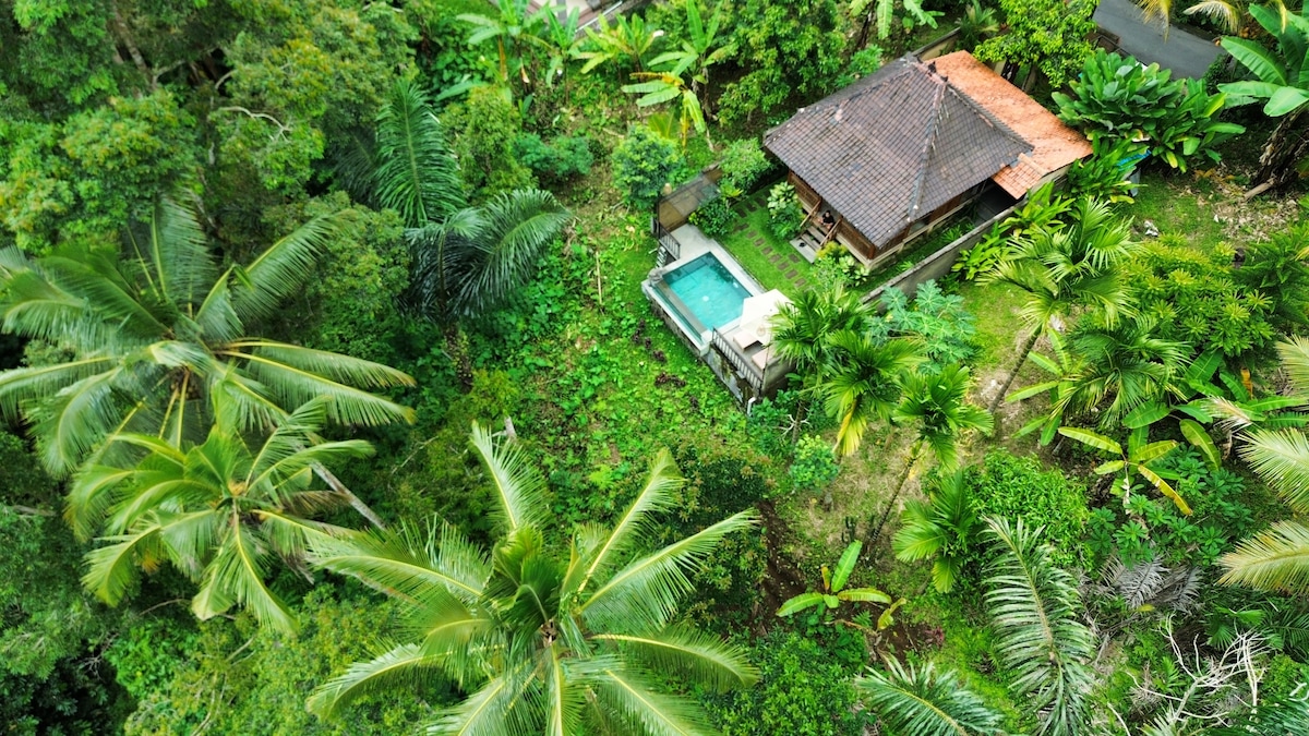 Katana Villa is a unique artistic Villa with a calm healing energy. We have 3 separate bedroom bungalows with AC, full kitchen, open space living room, and a gym. All set around an exciting 2 level swimming pool with a water-slide & cave! The perfect Villa compound for a family or group of friends, especially if you like animals. ;-)