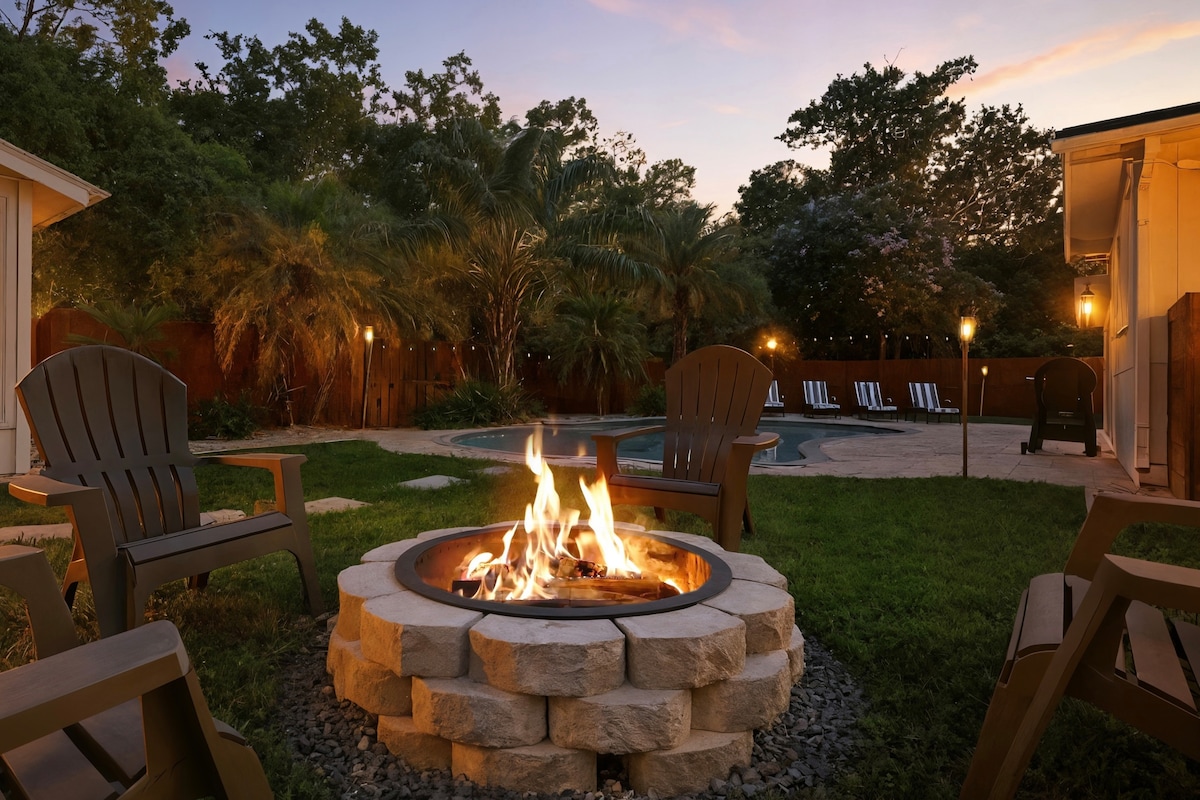 篝火炉、高尔夫球车、距离海滩/市中心5分钟车程、4卧/2张特大号床