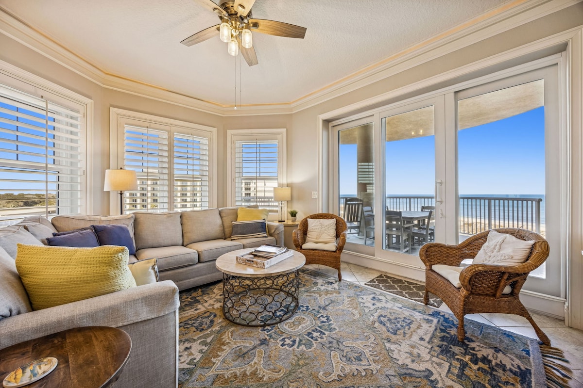 Luxury, elegant 2600 SQF penthouse, fully renovated, designed and furnished by a well known interior designer, on the 6th and 7th floor of Sea Dunes, at Omni Resort. Corner unit, panoramic view of the ocean, the island and the marsh. 3 bedrooms, 3 bathrooms,3 oceanfront balconies. Full cable service, free high speed wifi, smart TVs .Free parking, elevator, lots of amenities such as an oceanfront pool, tennis courts, golf course, spa, restaurants,...Unique experience of Luxury,Comfort and Peace
