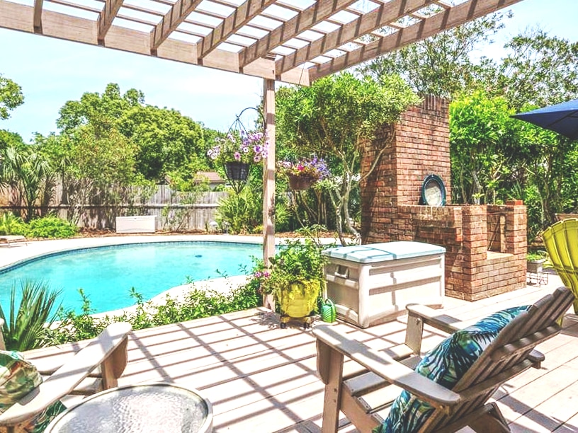 Cameo's Corner Amelia Island FL pool house. Dogs!