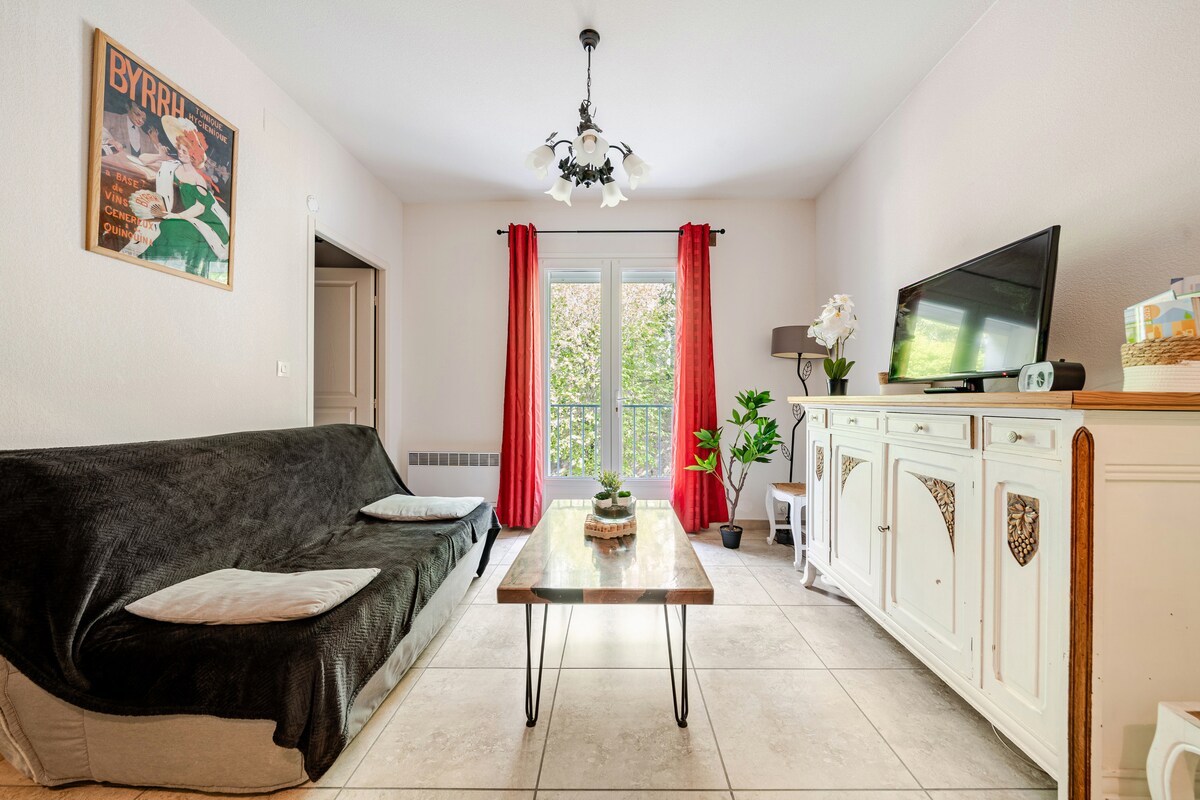 Joli appartement F2 40m², au 2ème et dernier étage, climatisation, douche à l'italienne, cuisine équipée, TV . Calme et lumineux, parking facile. Entièrement rénové. Situé à 3 mn à pied du centre ville. Céret est une petite ville très accueillante, musée d'art moderne, terrasses de cafés accueillantes, marché du samedi matin, nombreuses animations... Situé à 15 mn des villes thermales d'Amélie Les Bains et Le Boulou, à 30 mn des plages et 10 mn de la frontière espagnole. Au pied des montagnes.