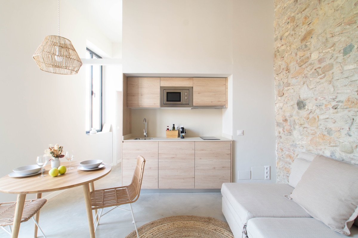 Aquest lluminós Loft, ha estat recentment reformat, conservant l'essència de l'edifici del S. XVIII respetant el máxim la seva personalitat i compta amb totes les comoditats actuals. Ha estat decorat amb detalls únics de diferents estils, perquè cada racó sigui bell , creant un espai hármonic i rómantic.. Situat el centre històric de la ciutat, en un carrer tranquil. Disposeu de 2 bicicletes de passeig ( gratuïtes) , per poder descobrir els fantàstics racons de la ciutat.
