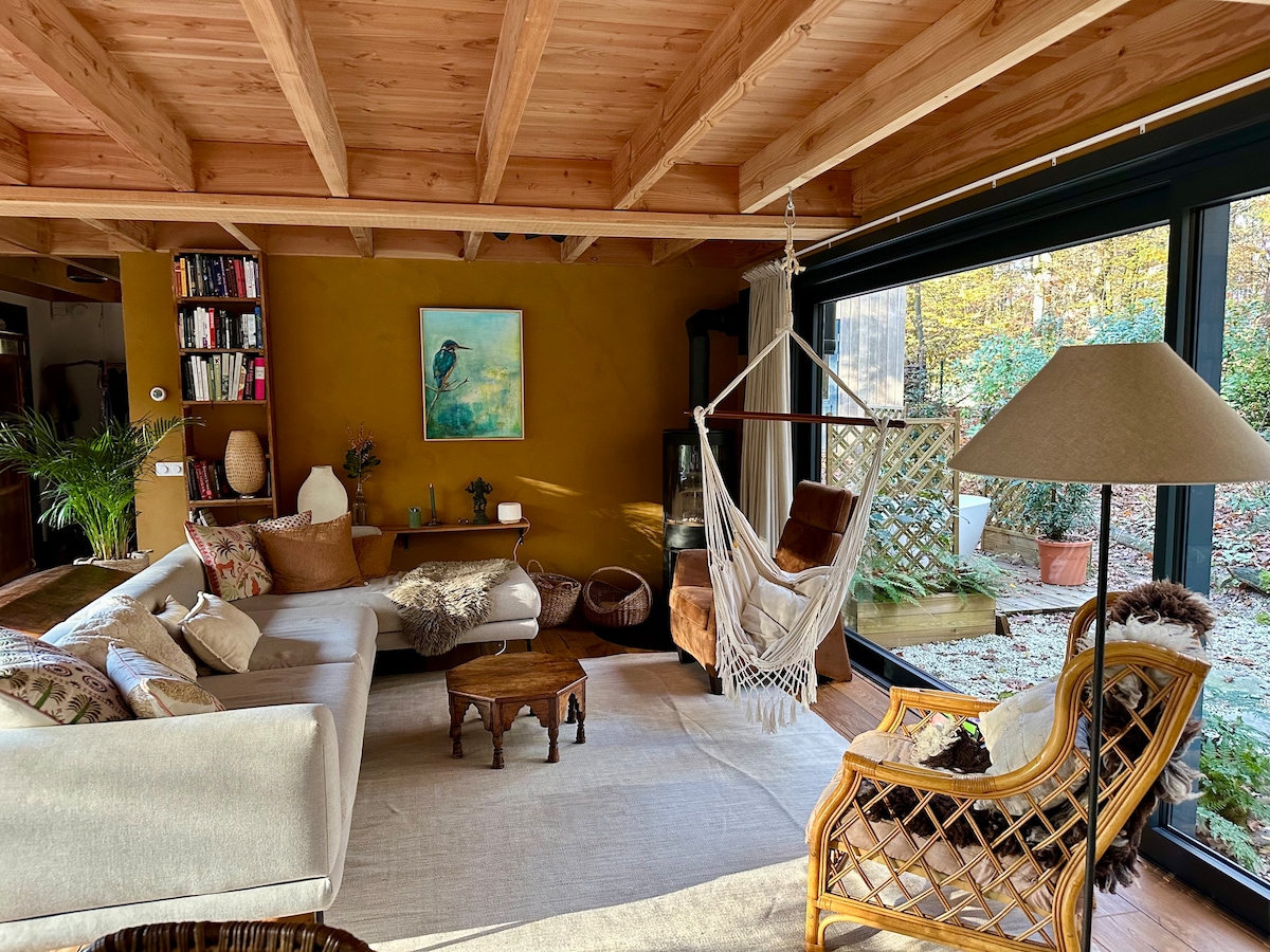 The Oak Tree Lodge is een houten huisje midden in het bos. Word wakker met vogelgezang, drink koffie in het ochtendlicht en hoor hoe soms een eikel op het dak valt , een teken dat je echt in de natuur bent. Binnen is het warm en sfeervol bij de pelletkachel, met opgemaakte bedden en een keuken vol comfort, inclusief basisingrediënten en wat extra’s. Buiten ligt een ruime, afgesloten tuin met loungehoek: perfect voor gezinnen en vrienden om samen te genieten van rust en privacy.