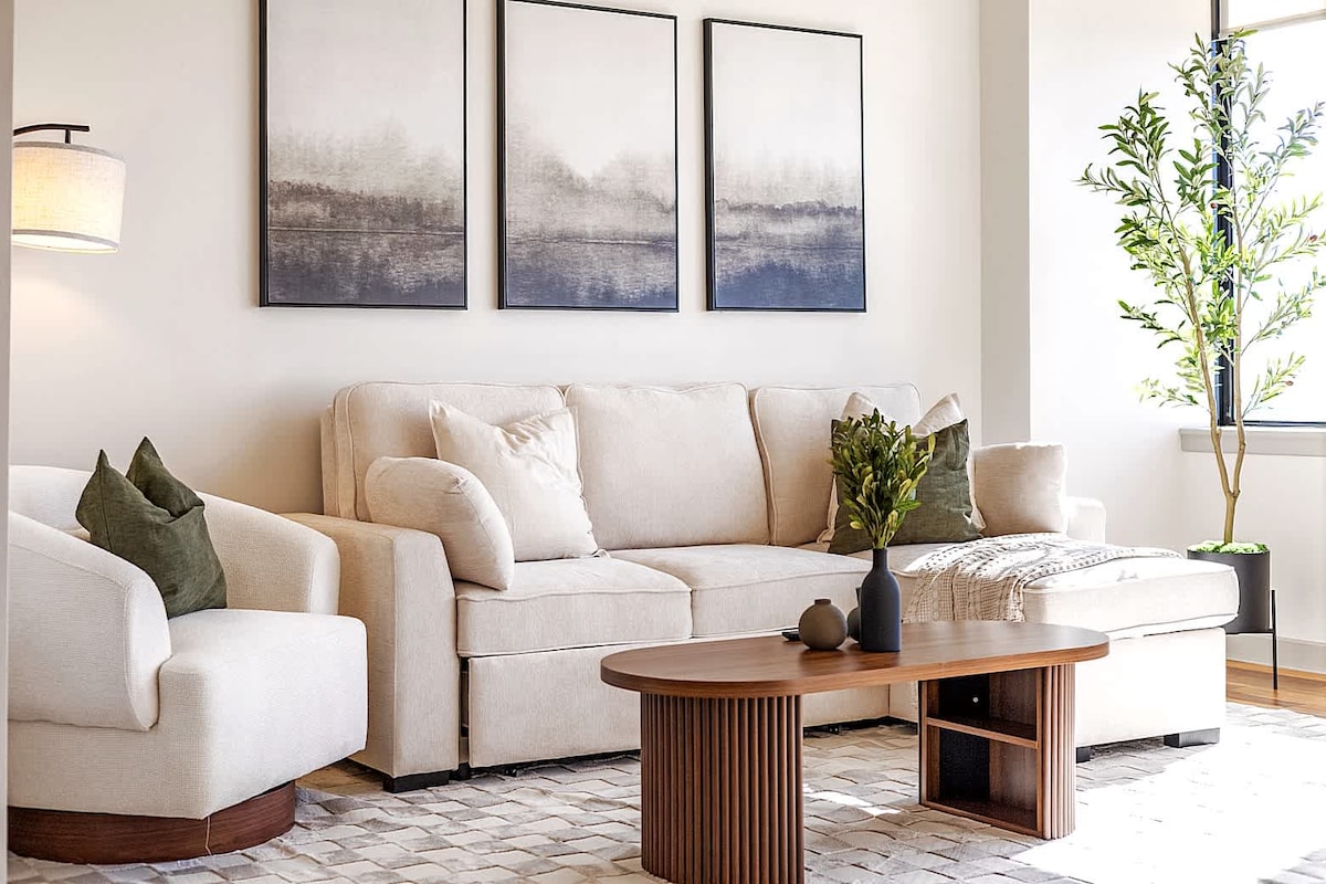 Experience the best of city living in our modern minimalist retreat! Pets Stay Free Enjoy breathtaking views of the city skyline from the comfort of our sleek and stylish high-rise apartment. Located in the heart of downtown, you'll be steps away from top attractions, trendy restaurants, and vibrant bars. Our apt. is the perfect haven for couples, solo travelers, and business professionals seeking a stylish and convenient base for their city adventures.