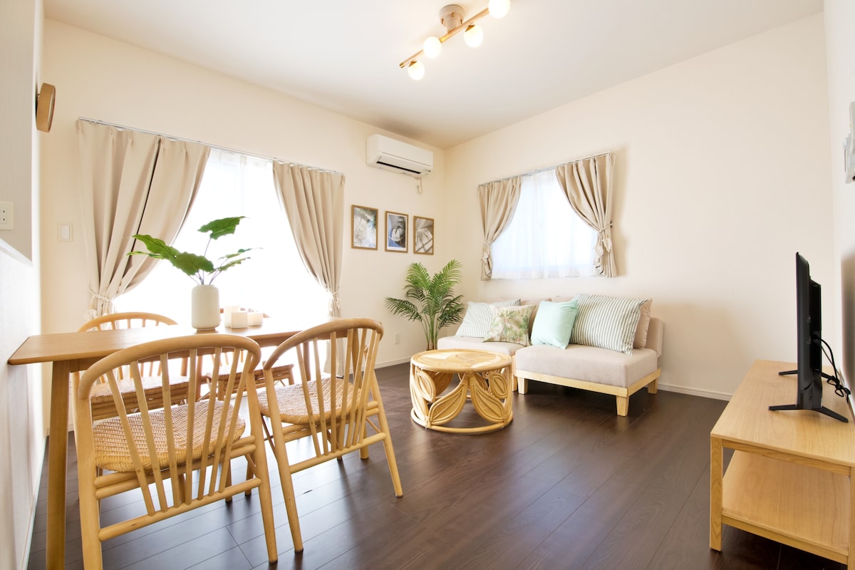 距砂边海滩步行10分钟|两室一厅|最多容纳7人|免费WiFi|每日仅限一组