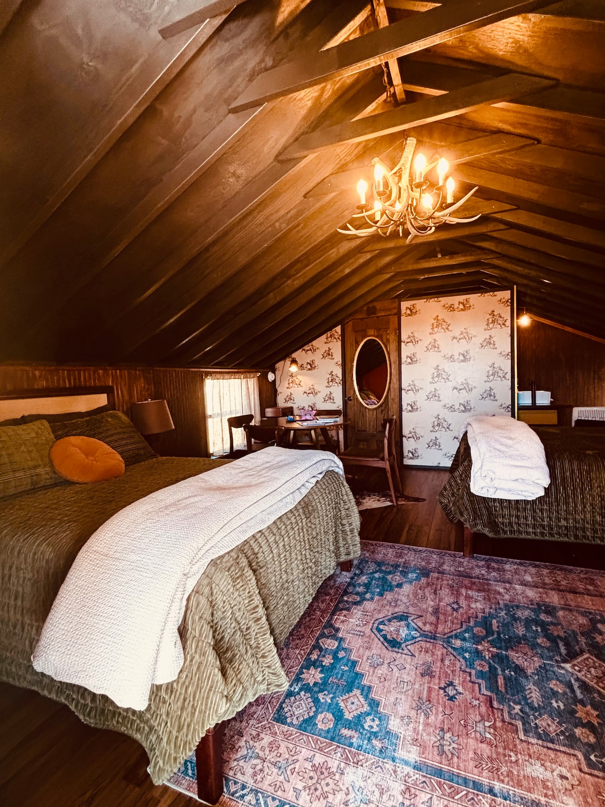 Once a horse stable, we saw the potential for this amazing space to not only host people, but to also inspire them. Named for the two heritage oaks whose branches embrace the space, Twin Oaks features 2 bedrooms with a spacious jack-and-jill-style bath. The living space sparkles, with natural light from wall-to-wall glass sliders bouncing off polished concrete floors. The patio delights, with gorgeous views, firepit and heated stock tank pool for year-round soaking. Welcome to bliss, y’all.