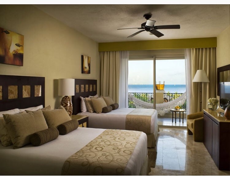 This tropical paradise is a 5 star beach front (ocean view not guaranteed) resort offers a two bedroom with king bed or two queen beds, sofa bed in living room, full kitchen and two full bathroom. Master room has whirlpool tub. Access to restaurants, pools, and jacuzzis. Kayaks, paddle boards and snorkeling gear available. For all inclusive it is additional $155/night per adult, you can eat and drink unlimited. All inclusive Child under 12 is $52.50.