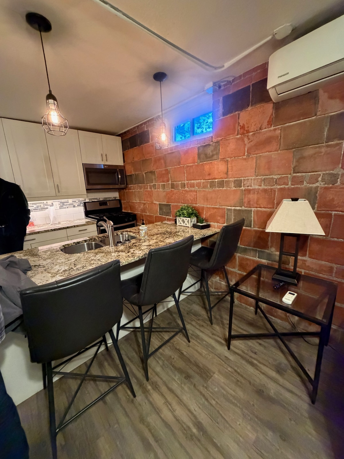 Enjoy an unforgettable stay in this stylish, updated historic apartment just steps from downtown Ames. This two‑level retreat features a fully equipped kitchen, elegant living area, serene king bedroom, modern bath, and in‑unit laundry—blending historic charm with refined comfort.