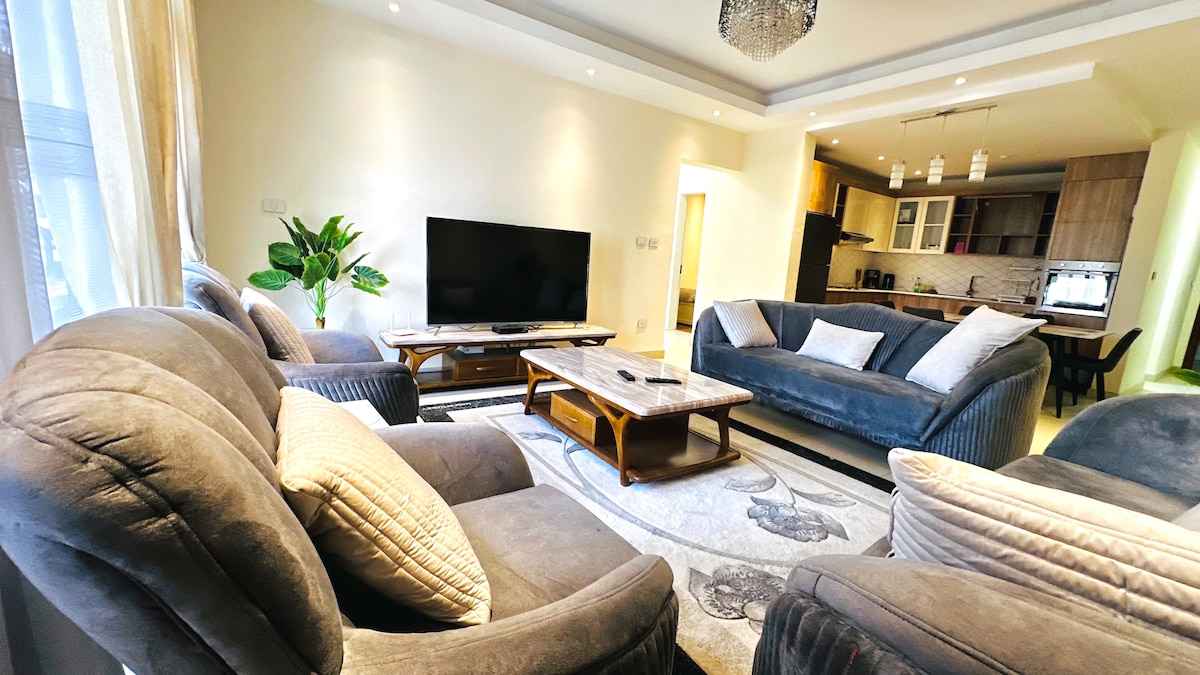 Welcome to your downtown oasis near Bole International Airport! This spacious 3-bedroom apartment features three private showers, a fully equipped kitchen, and a dedicated laundry room. Enjoy stunning city views and the convenience of a backup generator and parking space. Perfectly located in the heart of downtown, you’re just a short walk from local attractions and chill spots. Whether for business or leisure, this modern retreat is your ideal home away from home. Book your stay today!