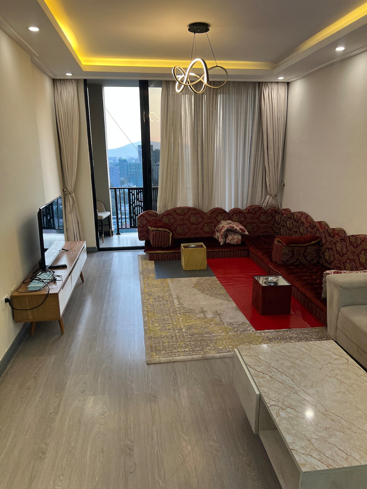 Located at the heart of Downtown Addis, This is a very uniquely designed and furnished unit with high quality furniture , WiFi Smart TV, backed up with automatic power generator, an extra reading nook in the living room with an astonishing view of the city ,closer to all major venues like supermarket shopping centers , United Nations , ECA , African Union and recreation centers Hilton ,Hyatt regency, Sheraton, Radisson blu etc...
