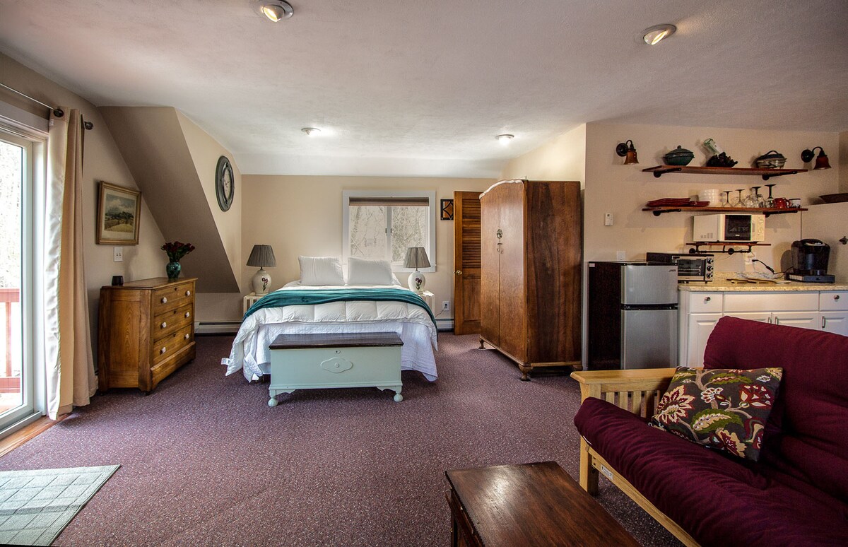 Stunning 2nd floor studio (limited kitchenette with easy to prepare Breakfast foods provided) close to Northampton, Smith and the Five Colleges, scenic drive to the Berkshires, one mile to the Snow Farm and just minutes to Valley View Farm. Lovely space & private deck overlooking perennial gardens & wildlife wandering by. Perfect stop when traveling through Western Mass, touring local colleges or a trip to enjoy the music, museums and restaurants in the Pioneer Valley and Berkshires.