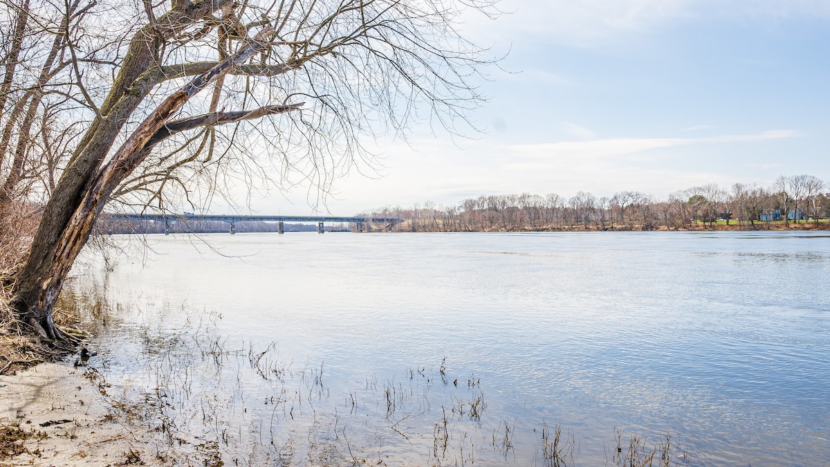 Unique 2 bedroom guest house on the Connecticut River in South Hadley, Sleeps 4 adults and two children. Bunk bed top for children or pull out of 4 adults. 1 bathroom Kayaking Paddle bikes and boards Fire pit Tour boat next door at Brunelle’s Patio Boathouse restaurant Village commons 1 mile away McCrays farm 1 mile away Ledges golf course 2 miles away Malls etc. 15 min MGM casino 15 min Basketball hall of fame 15 min Airport 45 min Amtrak 10 min Mt sugarloaf 20min. Hiking trails l