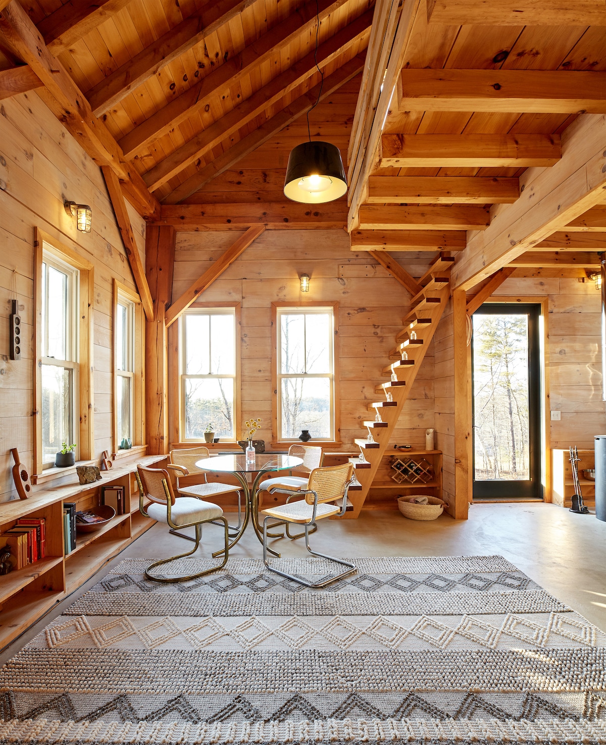 Escape into our airy, light-filled, modern, cabin. Built with wood milled right here, this serene retreat has lovely sunset views. 700 sqf detached cabin. Sleeping + office loft, 2nd queen sleeper, wood-burning stove, digital thermostat, wifi, 55” TV with Netflix, ample parking. Summer dips in the pool. North Amherst is 10 min from Amherst center, UMASS, Amherst College; 27 min to Smith College. **To access the 2nd floor office, you need to step over a beam. 1-step to the front door.