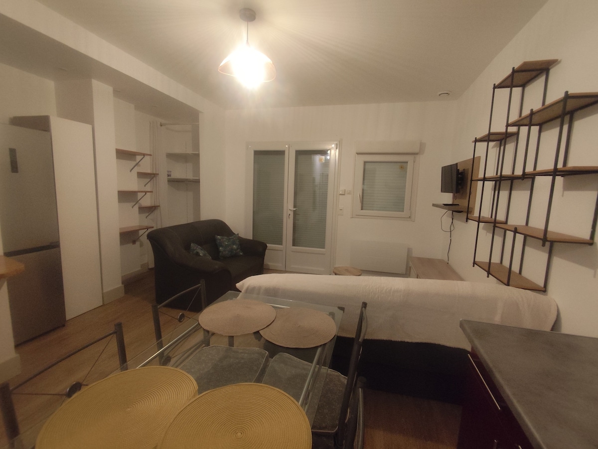 Nous vous accueillerons en toute simplicité, à coté de chez nous, dans un studio moderne, en retrait de rue, pour un séjour au calme. Vous y trouverez une cuisine équipée, un confortable lit de 160x200, une douche à l'italienne, et wc séparés. Vous pourrez vous promener dans le jardin d'environ 300m2, que je converti en mini-jardin Forêt comestible. Et pour d'avantage de plaisir, je peux vous proposer un panier petit-déjeuner pour profiter encore plus du moment !
