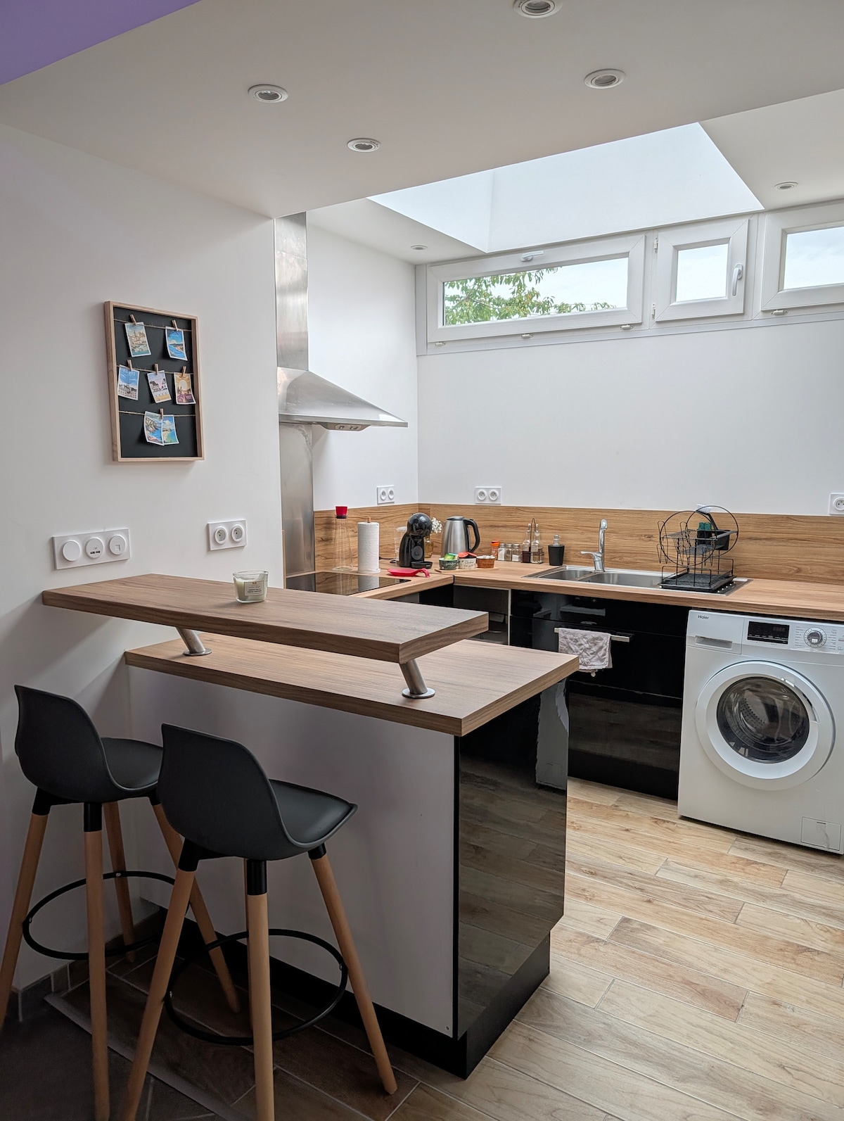 Beautifully renovated 100 m² house located in Amiens, in a quiet neighborhood (Saint-Honoré), just steps from the center and amenities. On the ground floor you will find a large kitchen opening onto the dining room and living room, and a separate toilet. Upstairs : two cozy bedrooms and a bathroom with a toilet. On the second floor: one attic bedroom with a single bed, a desk, and a small sofa. The house is perfect for enjoying Amiens and exploring the surrounding region.