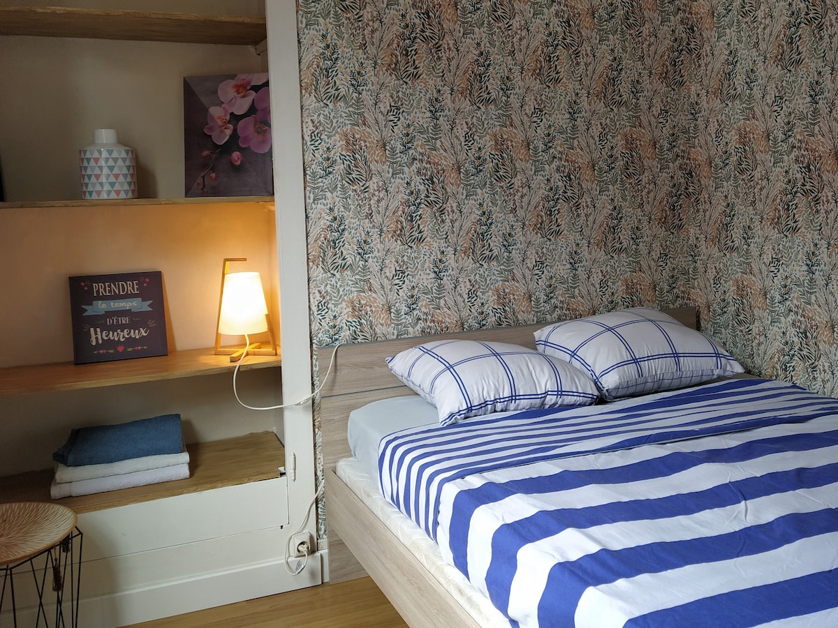 房子位于市中心和 CHU 之间*露台*无线网络*可住 4 人