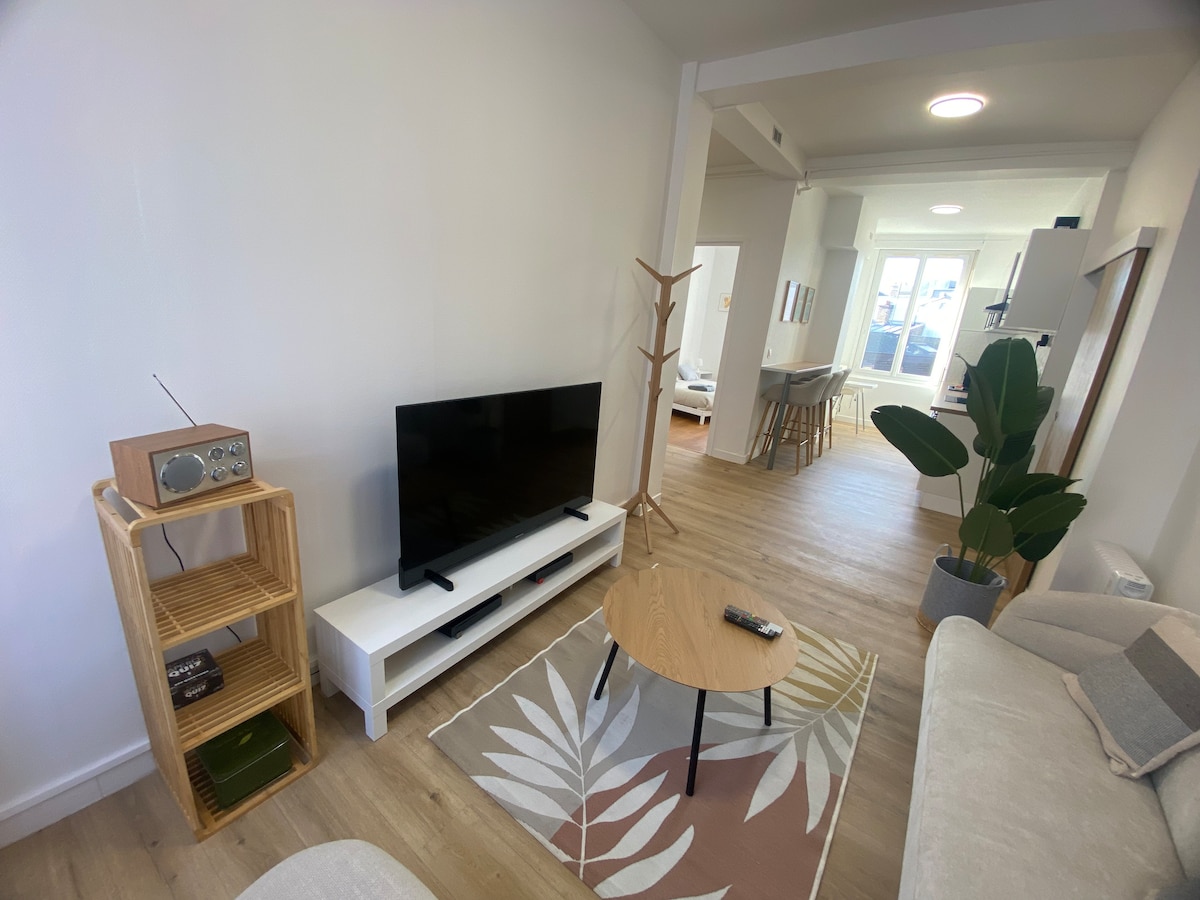 Idéalement situé en centre ville dans le quartier des halles du Beffroi, à quelques minutes a pieds de la Cathédrale et des restaurants de Saint leu . Logement refait a neuf et disposant de tous les équipements nécessaires pour y passer un agréable séjour. Salon avec son écran plat, cuisine ouverte avec îlot toutes équipes : plaque de cuisons, hotte , four , lave vaisselle , micro-onde et lave linge . Chambre avec écran plat et dressing. Salle de bain avec baignoire et vasque en marbres .
