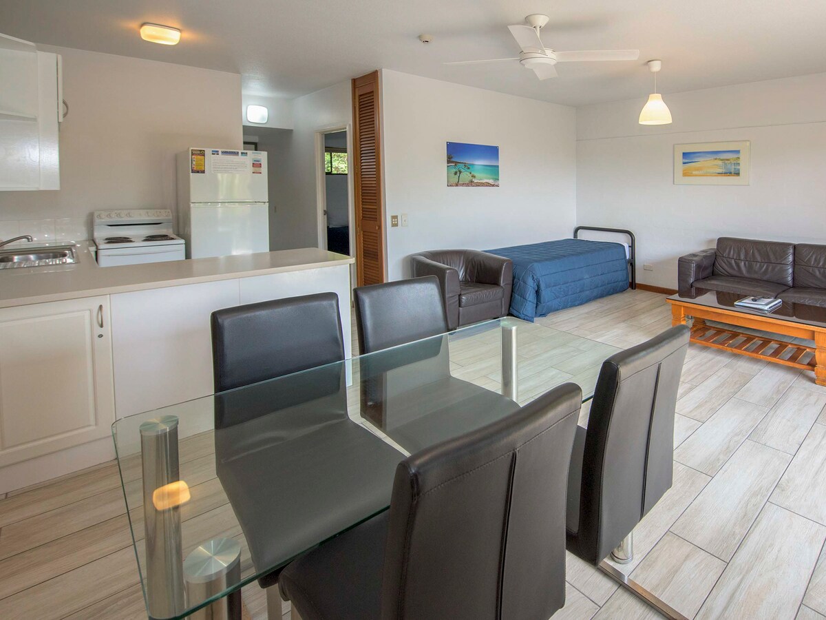 The Kraken is crackn' for the ultimate beach pad! In one of the few beachfront resorts on Straddie, you can hear the roar of the ocean, and taste the salt, as you watch the waves crash on the beach through tree-filtered views from the swanky "nautical steampunk" lounge. Fully self-contained unit. Bus stop at your door (no need for a car). Heated pool, sauna, boardwalk to beach. Easy walk to pub, cafe, shops, bowls' club, skatepark, library, tennis court, markets, and many glorious beaches.