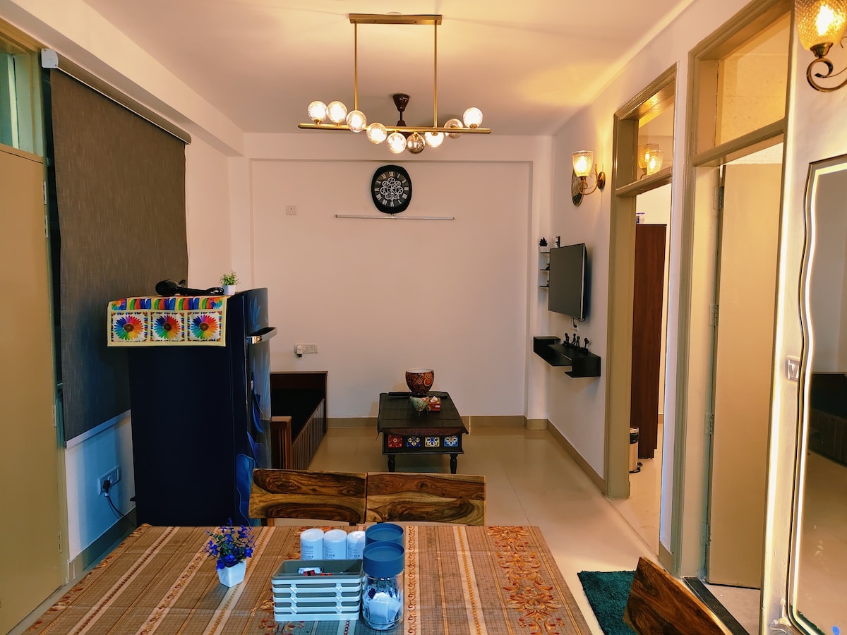 BLUO STAYS - Award winning Homes! #Staycation #CoupleGoals Awesome Designer Penthouse with private Terrace Garden having al-fresco seating, Open Shower, Bar, TT & Gym! Private Home in Sector 45 Noida, 10 min to Great India Place & Gardens Galleria - King Bed, 55" Smart TV with SoundBar, Bathroom with BathTub, Couch, Dining Table & fully equipped Kitchen plus Barbeque & Bonfire. All-inclusive Daily Rental - WiFi Internet, Netflix, Cleaning, Washing Machine, Utilities, Parking, Power Backup..