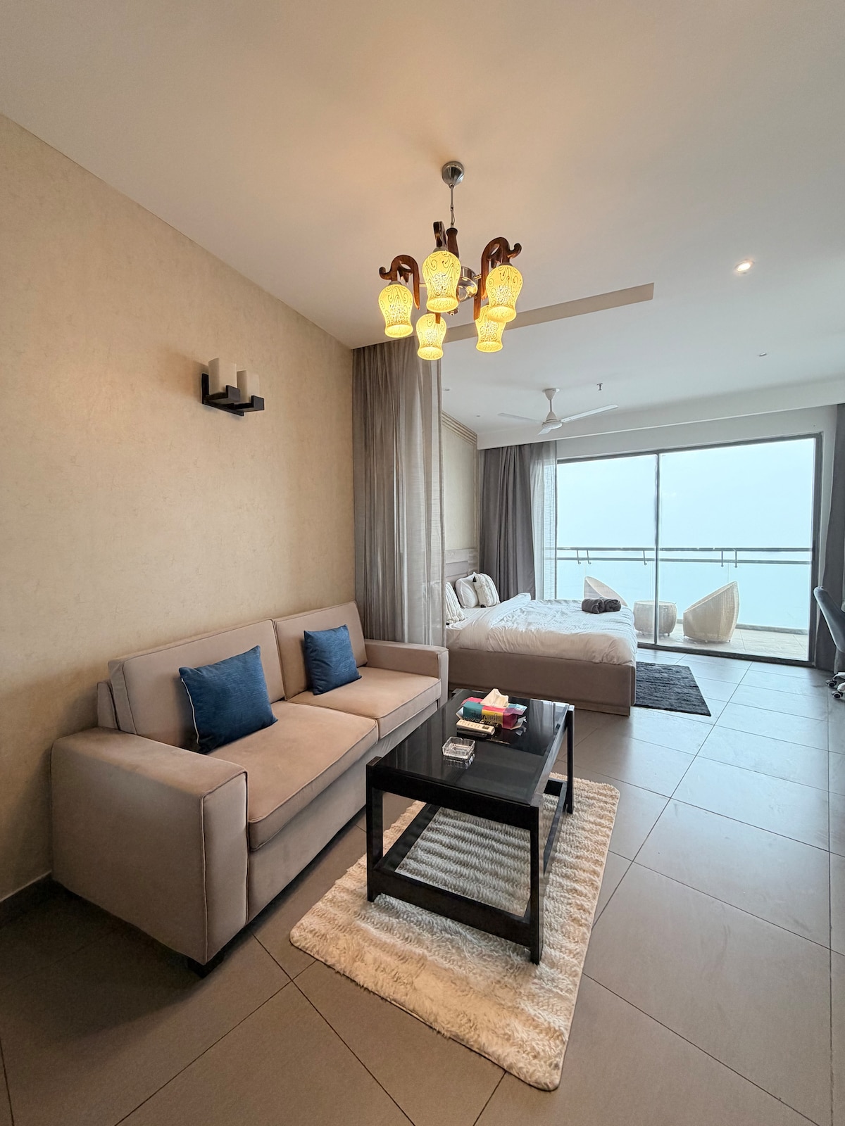 Welcome to The Beige Haven a refined luxury studio located on the 30th floor, offering a calm, elegant space with beautiful skyline views Designed in soft beige tones, this studio is perfect for guests who appreciate comfort, privacy, and a peaceful high-rise stay Large windows fill the studio with natural light, while the thoughtfully curated interiors create a warm and relaxing atmosphere. Whether you are visiting for work or leisure, this space offers the ideal blend of style and convenience