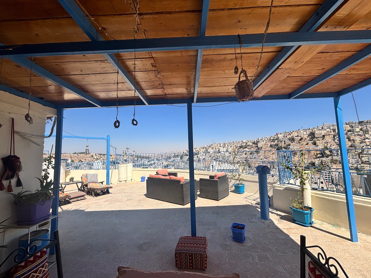 Cozy room with private rooftop, one bedroom studio apartment with a glamorous view overlooking the citadel and the centre of Amman. Basic Terms and Conditions: 1- The guest is responsible for ensuring that the accommodation is left in the same condition as it was in upon check-in 2- Key return instructions - if you have early flight just text me and leave the keys inside 3- Compensate any broken, damaged or missing items in the apartment or on the rooftop