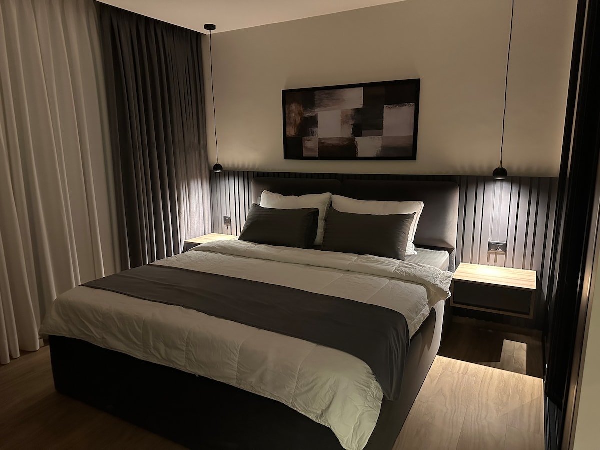 Ultra-modern condo located in the heart of central Amman. Designed with comfort and convenience in mind, this space is fully equipped for both short and long-term stays, comfortably accommodating up to four guests. Enjoy modern living with air conditioning in every room, high-speed Wi-Fi, a fully eqipped kitchen, cozy bedrooms, and a stylish living area ideal for relaxing or entertaining.