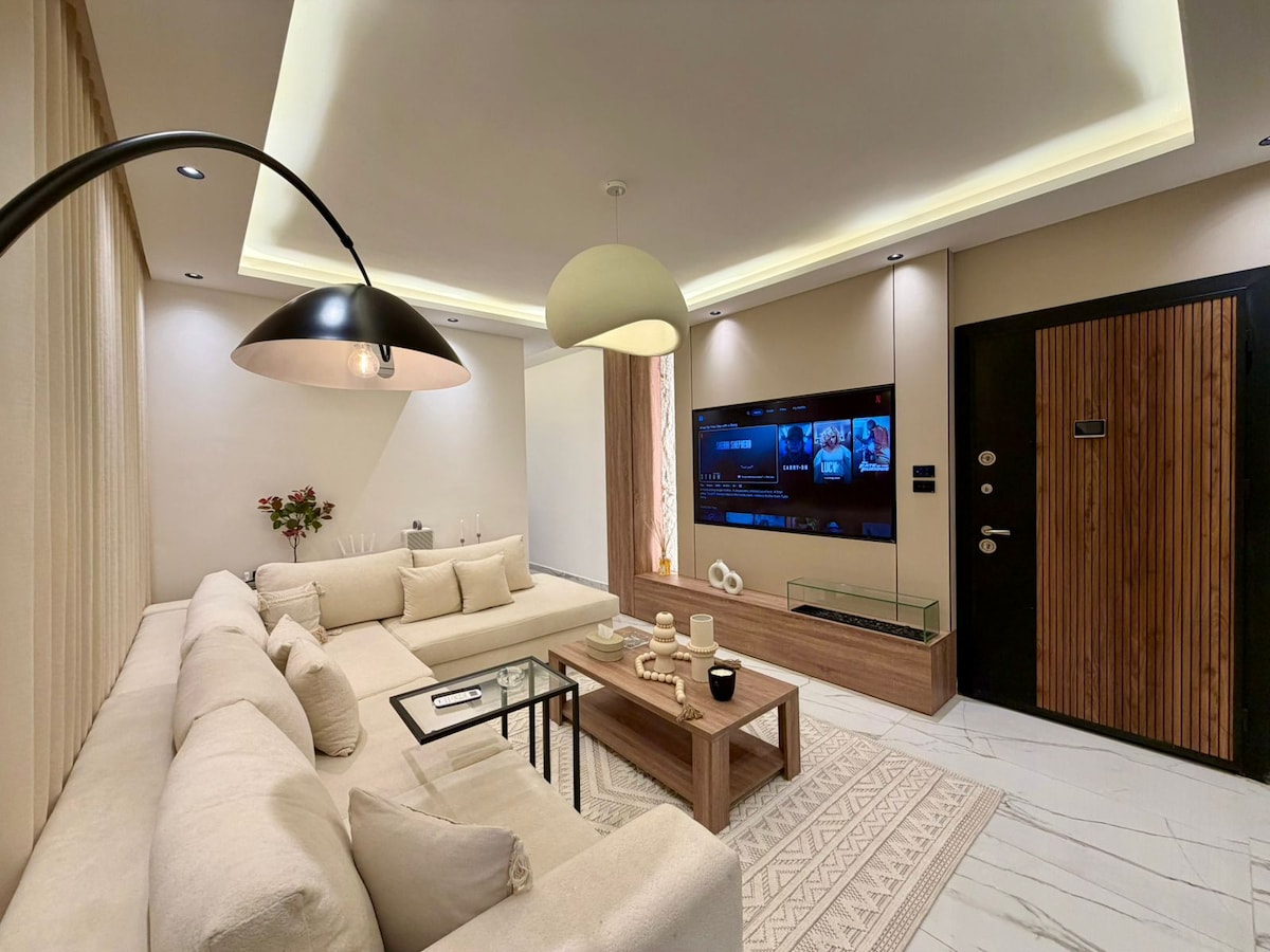 This apartment is more popular with families because of its various advantages, the most significant of which are its comfort, space, and tranquility. As there are three distinct rooms in the apartment, more people can live under one roof. The property also features a wide terrace with lovely seating spots and lots of plants.