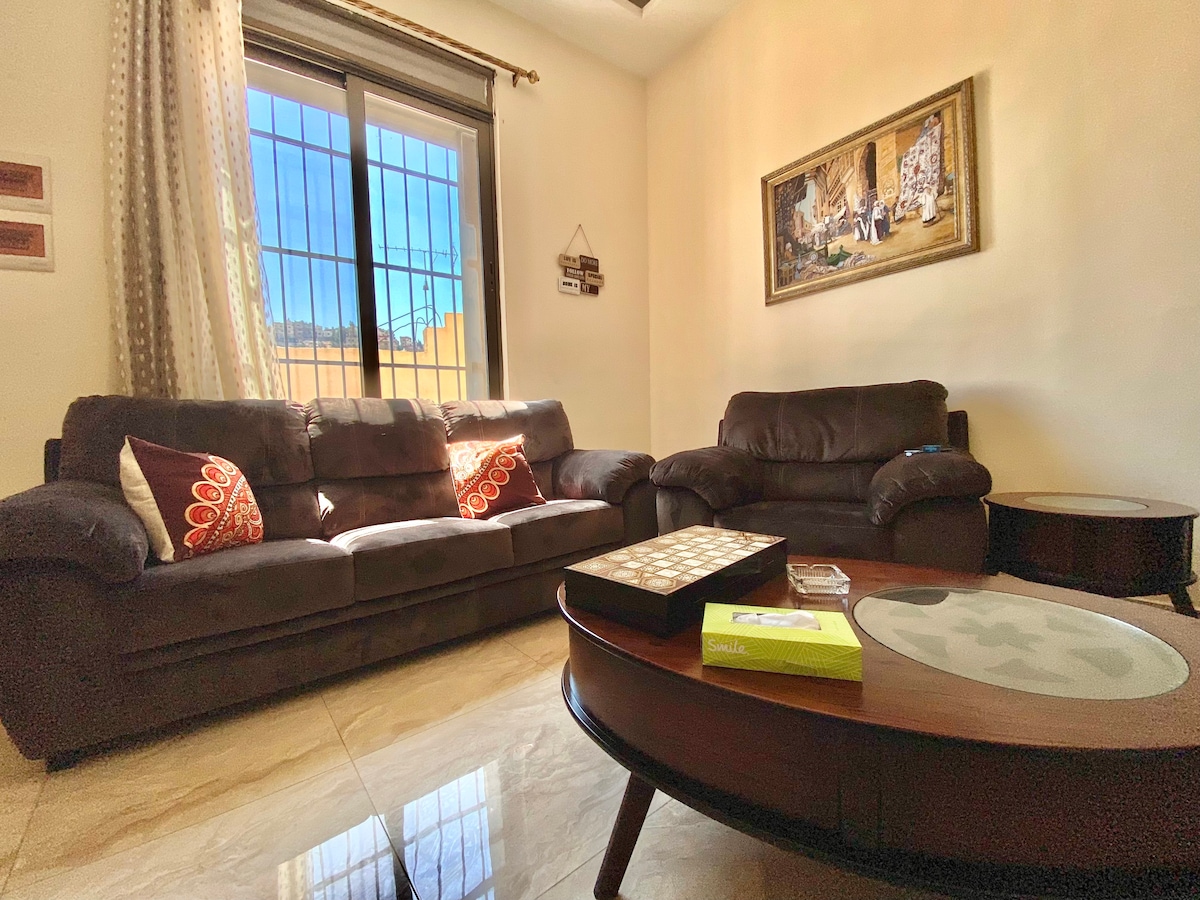 Enjoy your peaceful stay in a vintage spacious house located in a small village. •120 Meters. •Private patio with BBQ. •2 Bedrooms, 1 bathroom, 2 living rooms. •Fully equipped kitchen. •Wi-Fi, TV, and some books to read. •Extremely safe neighborhood. •Errands can be accomplished in Madaba It’s 10 minutes away. •30 Minutes away from Ma’in Hot Springs. •20 Minutes away from Mount Nebo. •40 Minutes away from Dead Sea. •50 Minutes away from Amman. •30 Minutes away from Airport