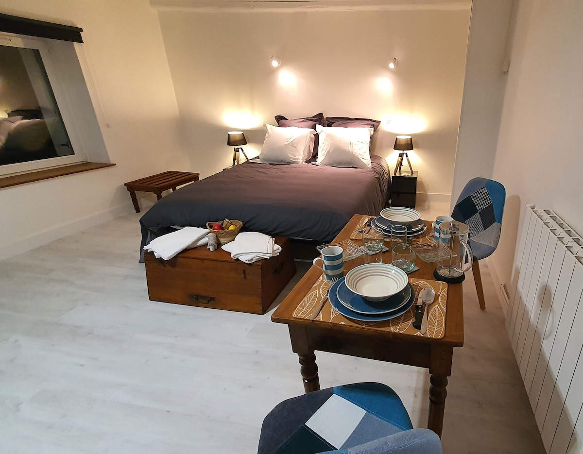 Studio de 14m2, proche de l'autoroute (1min), avec tout à proximité: Boulangerie et macdo/restaurants à moins de 5min à pied, Cora et KFC à 15min à pied. Indépendant: l'entrée/toilette/douche/Coin café Rez-de-chaussée: pratique si vous avez des valises Lit de 140 x 190 cm Attention: nous fournissons des vaisselles/couverts, mais pas de moyen de cuisiner, un micro-onde est à votre disposition. Petit déjeuner sera fourni: pains de mie (ou viennoiserie)/lait/beurre/café/thé/Yaourt/Fruit