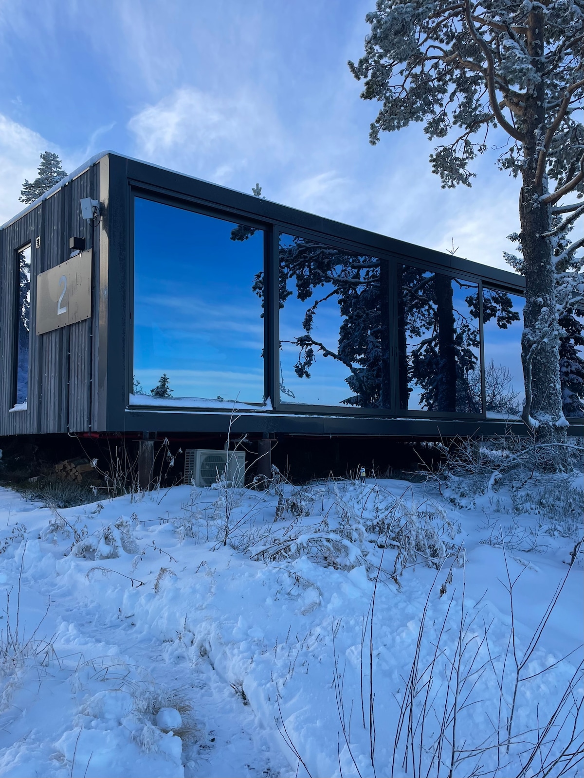 Senk pulsen i toppen av Stolpehytta! Stolpehytta ligger 5 minutter unna Blaafarveværket i Modum kommune, rett ved klatreparken Høyt & Lavt Modum. Her kan du finne roen blant tretoppene. De store vinduene sørger for en panoramautsikt utover landskapet og nattehimmelen. Bygget i massivtre, med et areal på 27 m2, gir den akkurat plass til det du trenger for en avslappende tur vekk fra hverdagen. Ønsker du aktivitet kan du leie elsykler, rusle ned til klatreparken eller utforske nærmiljøet.