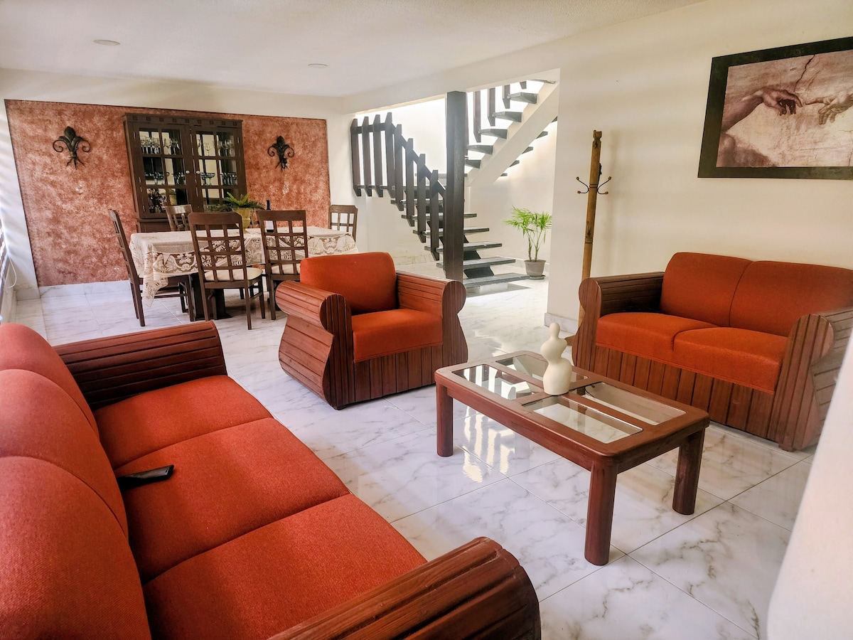 Enjoy an amazing stay in this bright, fresh, and super comfortable house. It has a lovely garden to relax or for your pets, fast WiFi for work, and a fully equipped kitchen so you can cook with ease. Located just steps from Explanada Mall and close to the Periférico, getting around is super easy. Our previous guests highly recommend it.