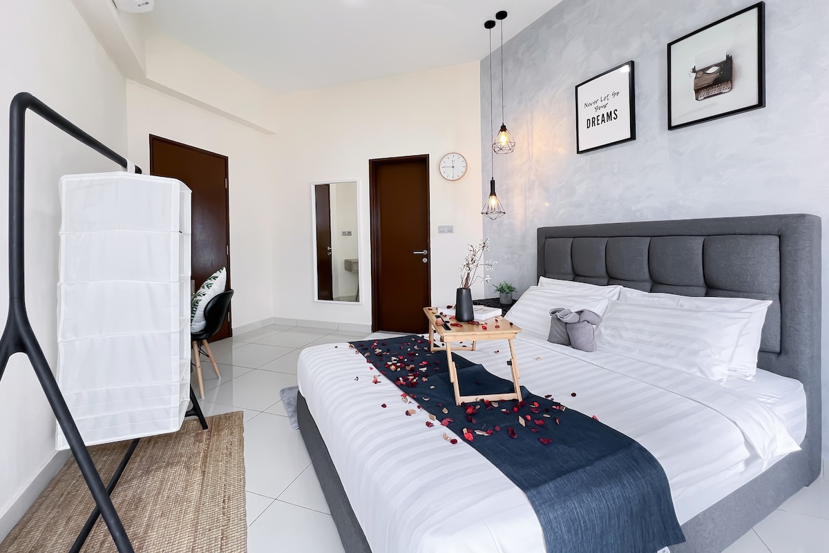 Why stay at The Elegance Suite at Lucentia Residence - the best views of KL - beautifully decorated with a fun spirit - centrally located - near public trans - fast wifi - 2 TVs with Netflix, Apple TV, Prime Video - 2 gorgeous pools - family friendly with baby crib & high chair - gym, pool table, BBQ pits, piano - 1 parking - sleeps 4, max 5 - LalaPort Shopping Mall & the WOW entertainment street are attached - grocery, drug store, and many restaurants are attached - movie theatre GSC